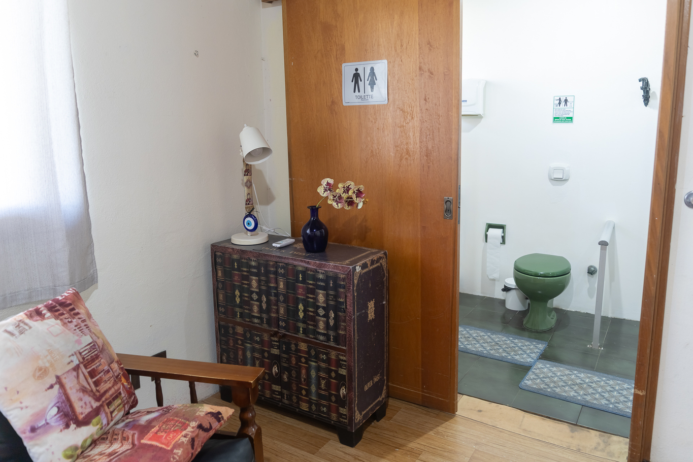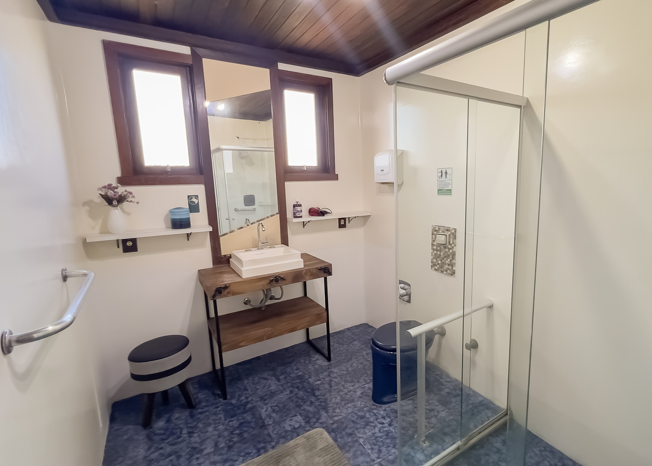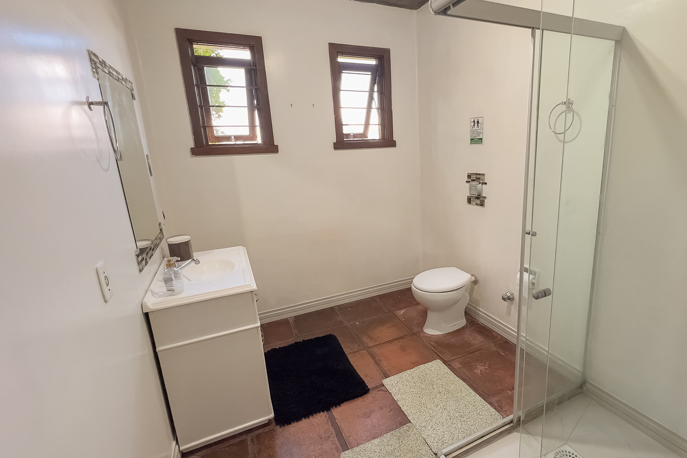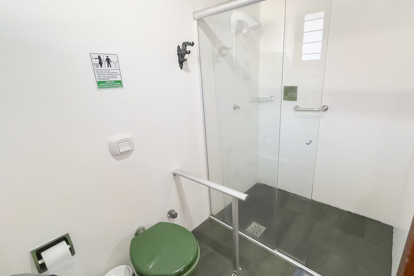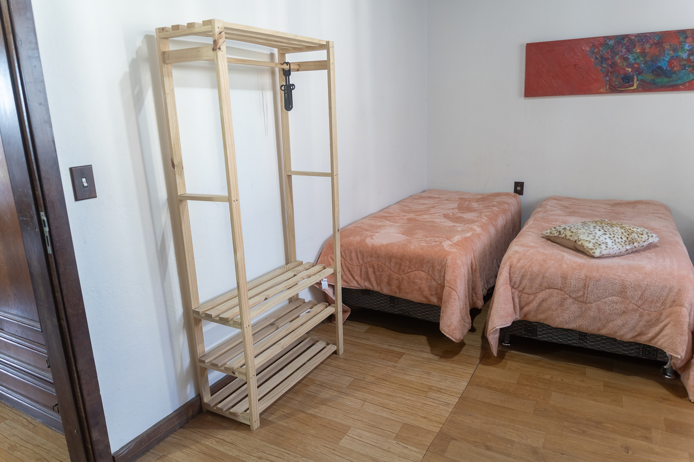 - Quarto 1 – Suíte: 3 camas de solteiro, ar-condicionado, armário, banheiro privativo com box e secador de cabelo