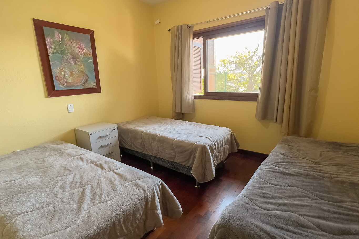 - Quarto 3: 3 camas de solteiro, ar-condicionado e armário