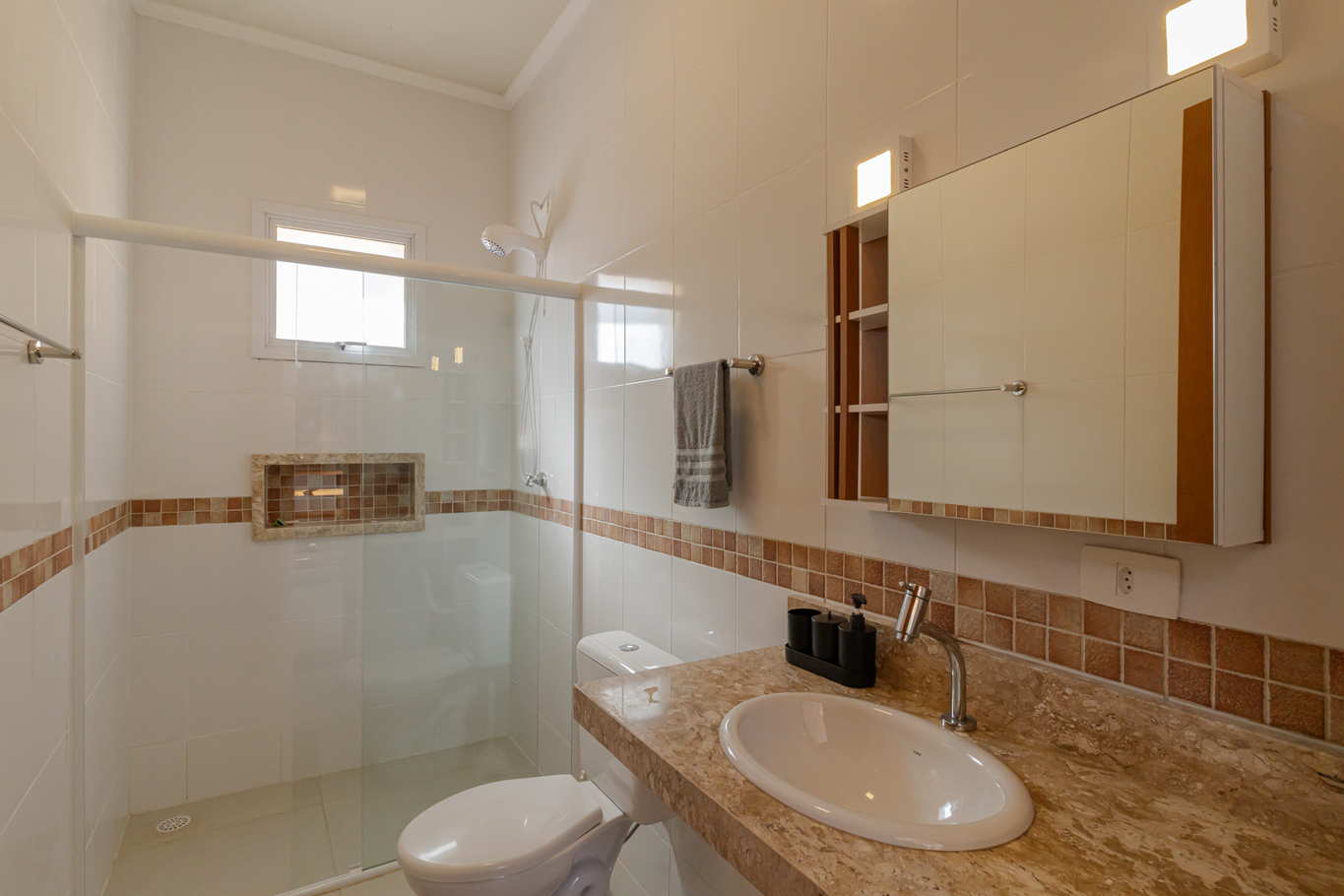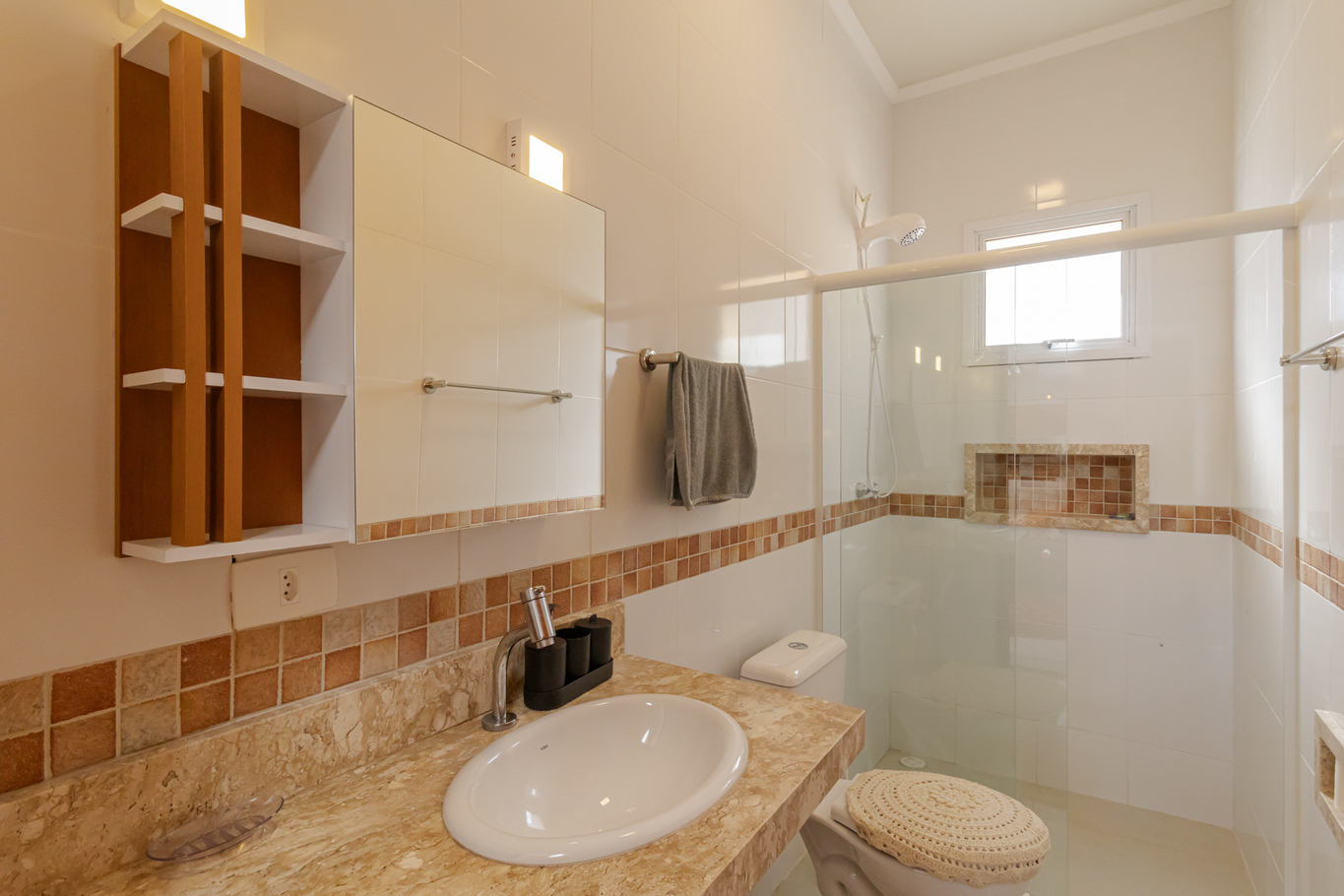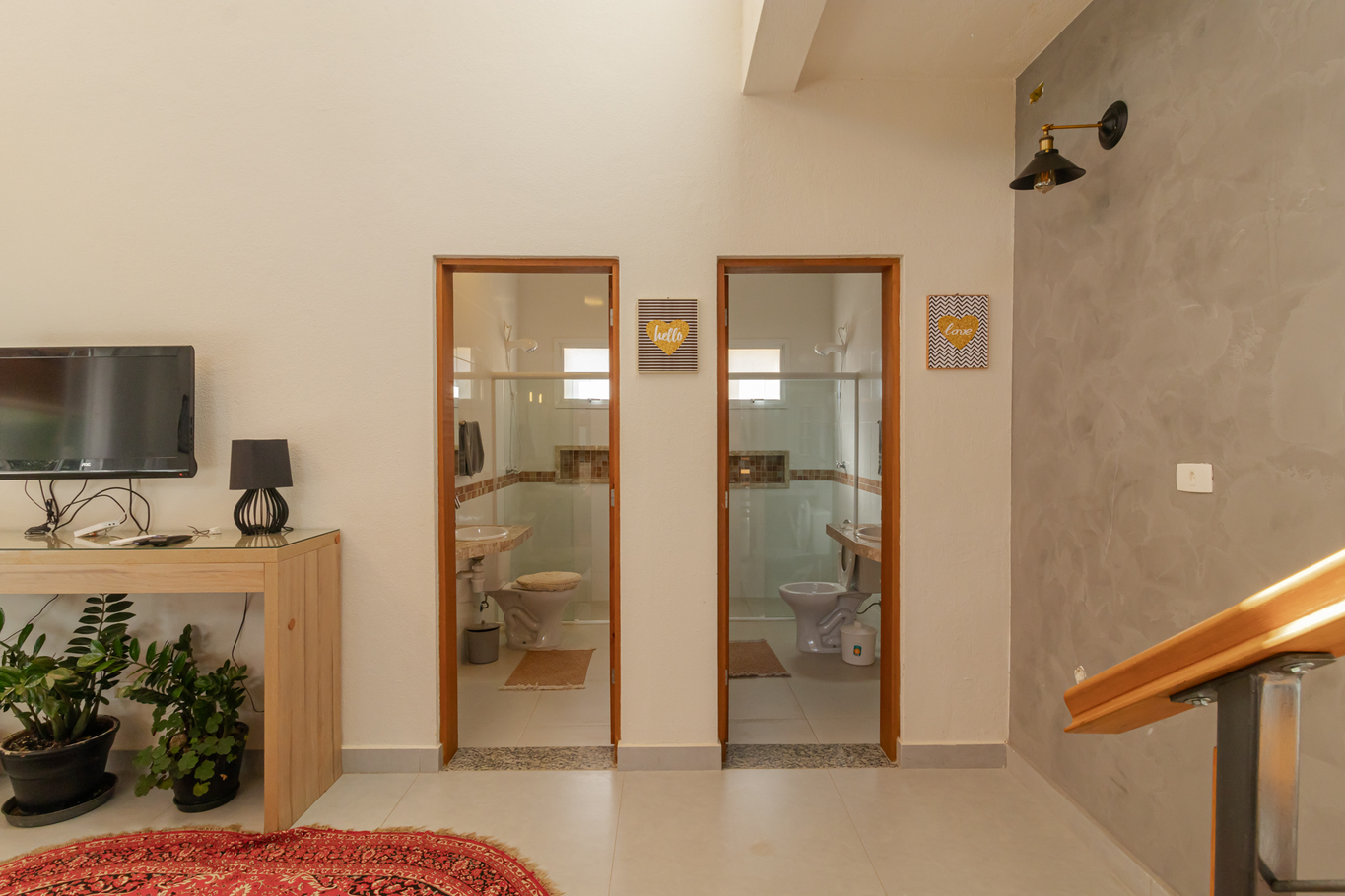 - Banheiros adicionais: 2 banheiros extras com chuveiro elétrico e box de vidro, garantindo conforto para todos os hóspedes