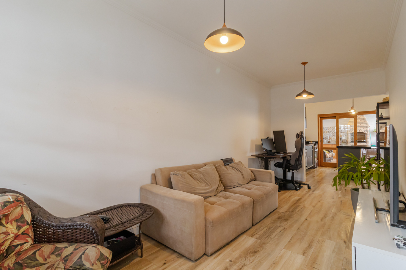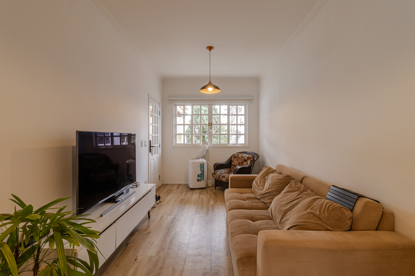 - Sala ampla com smart TV, sofá-cama e sistema de som