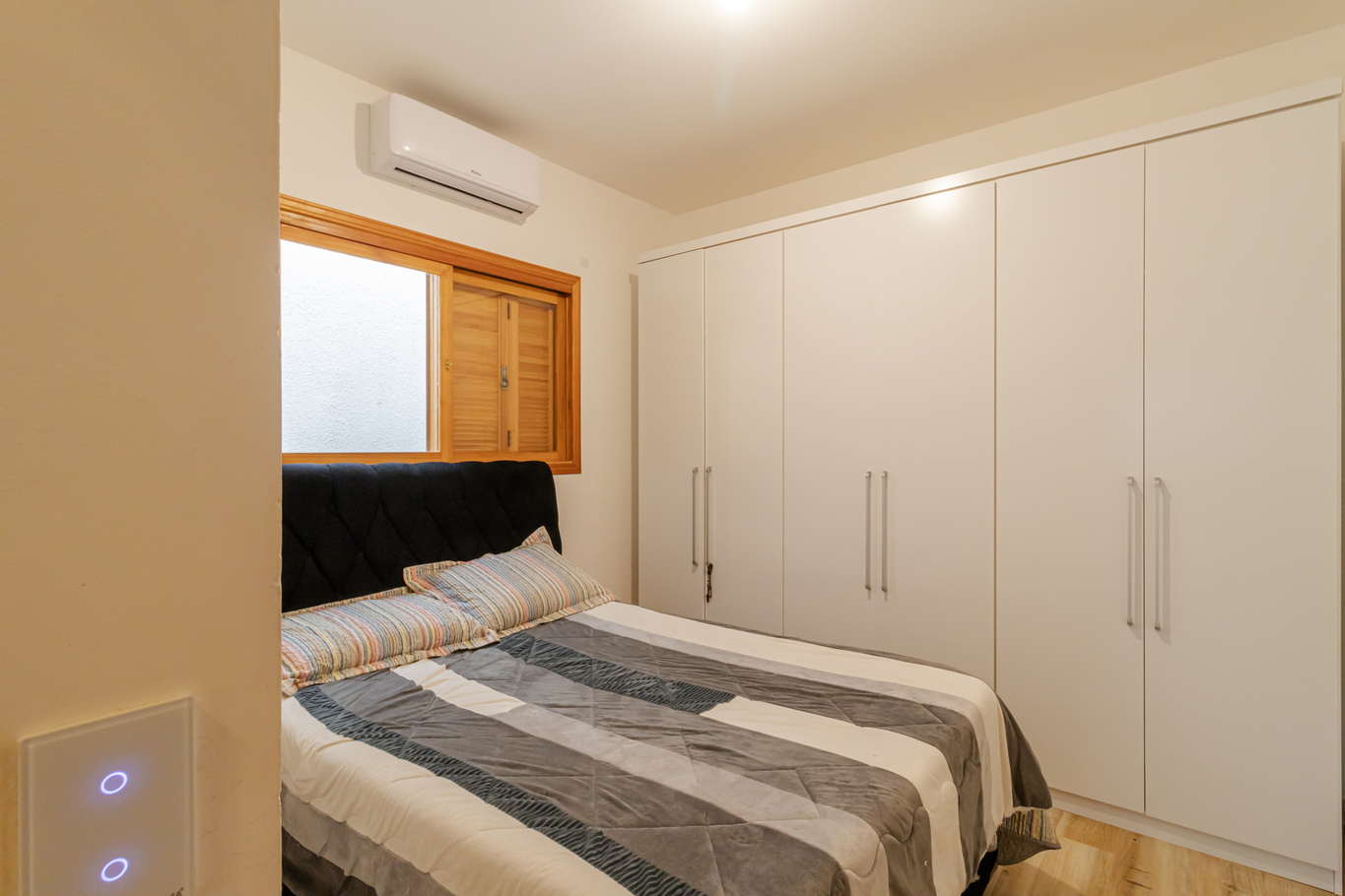 - Quarto com cama de casal, ar-condicionado, armário e edredom