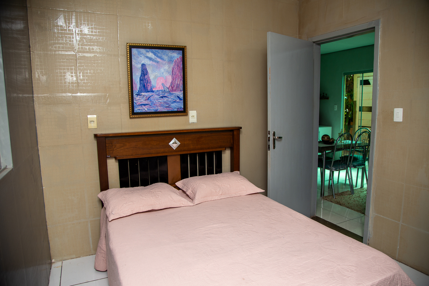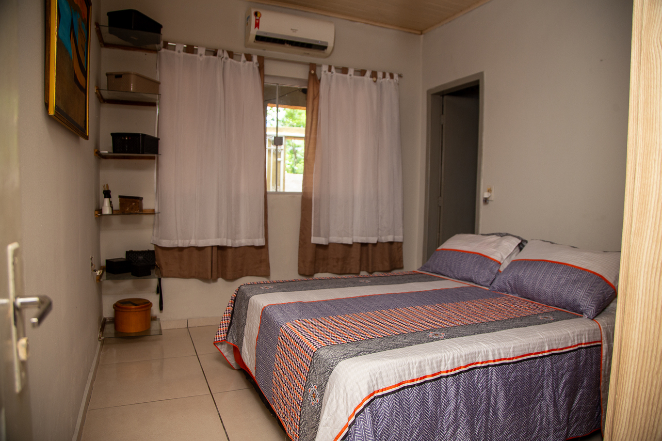 - Quarto 1 (suíte): cama de casal, ar-condicionado, armário e ventilador
