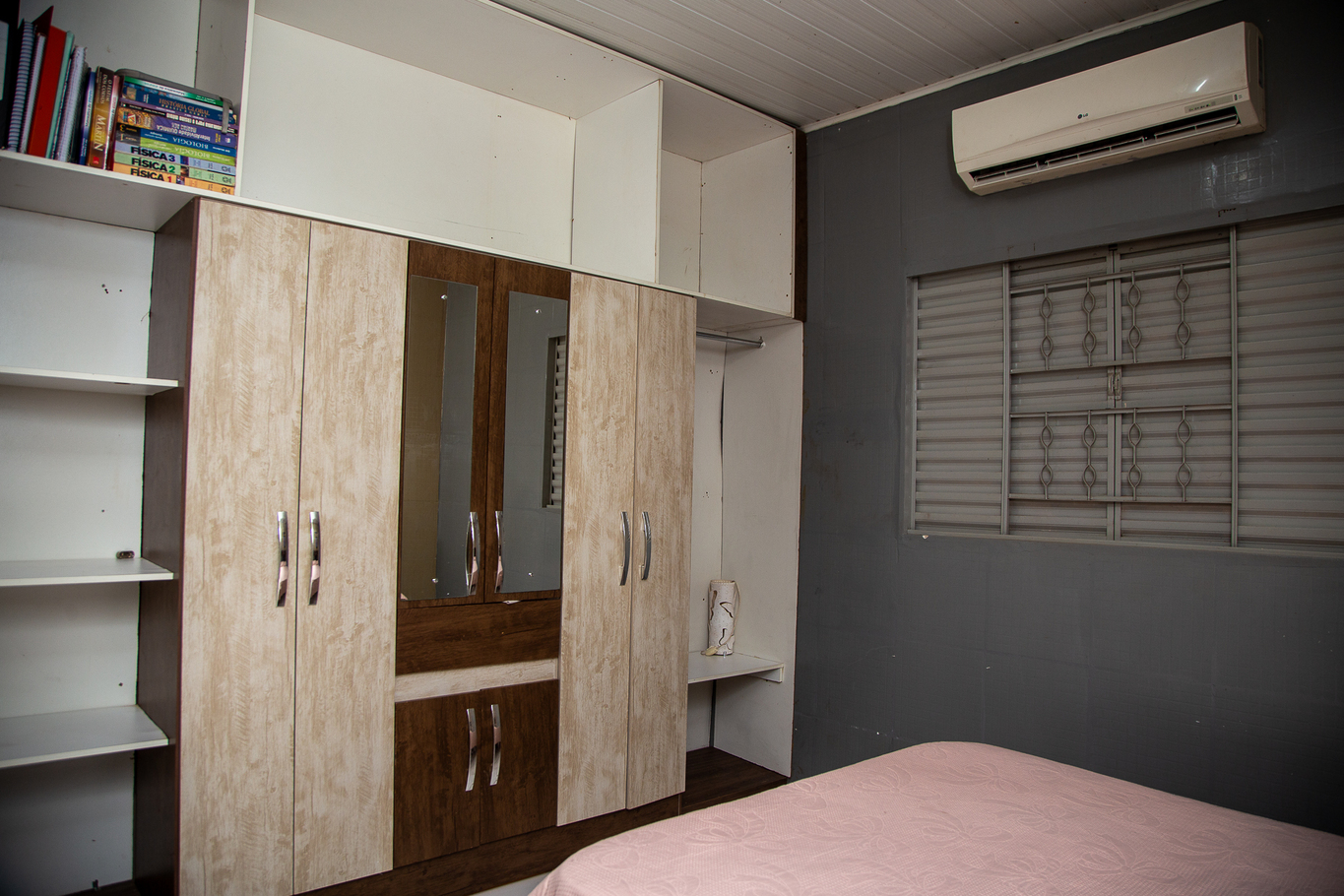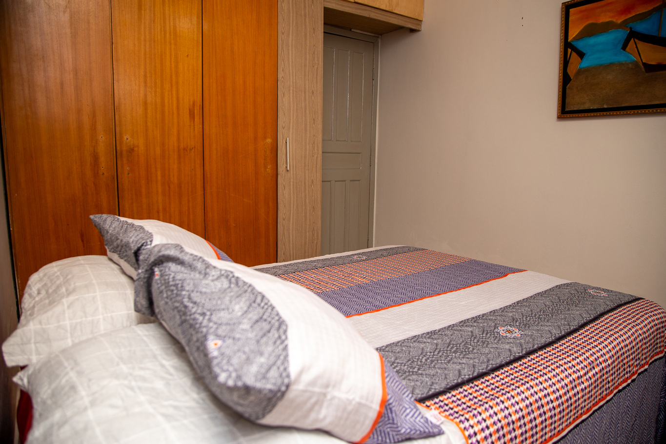 - Quarto 2: cama de solteiro, armário e ventilador de teto