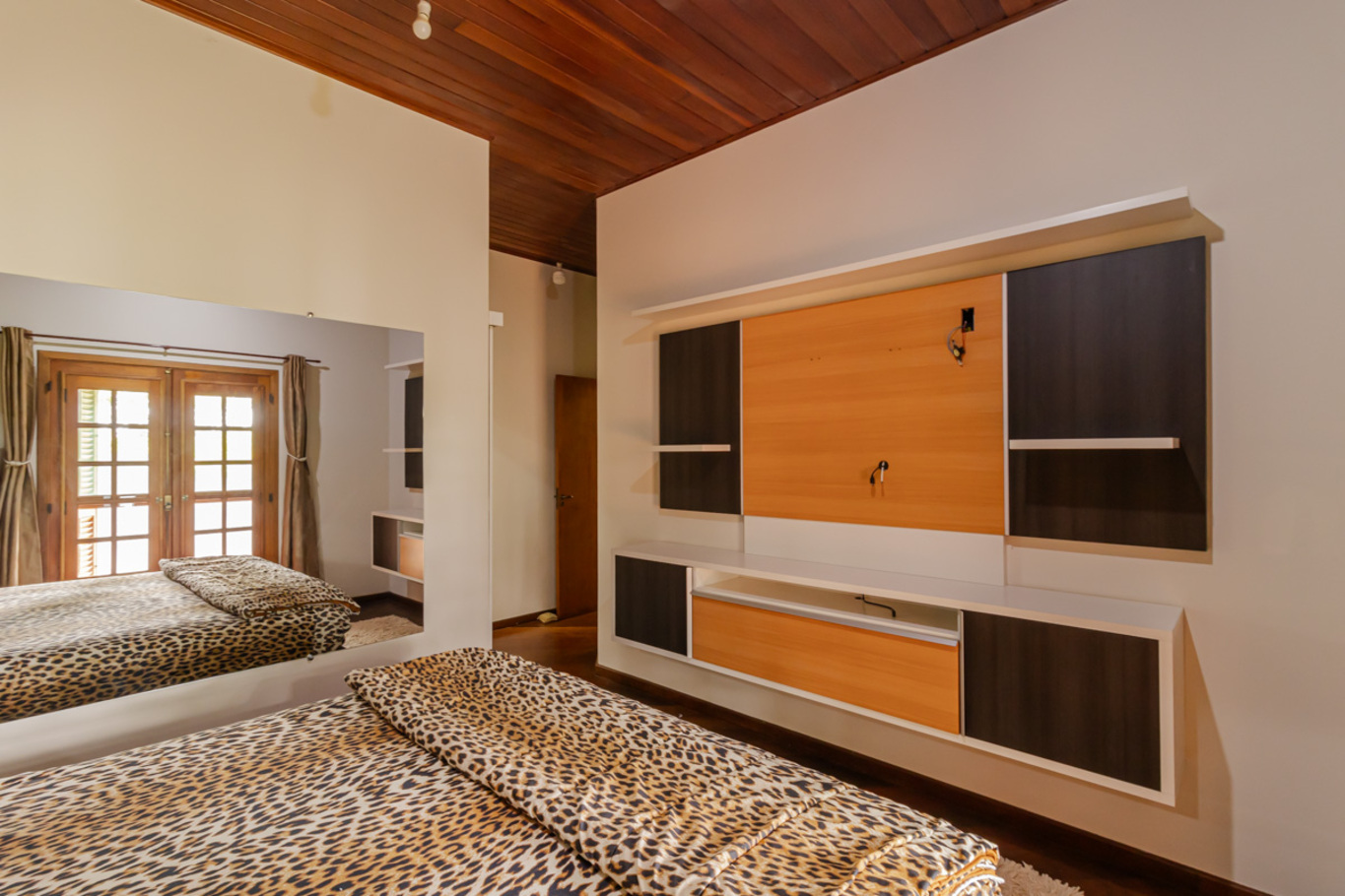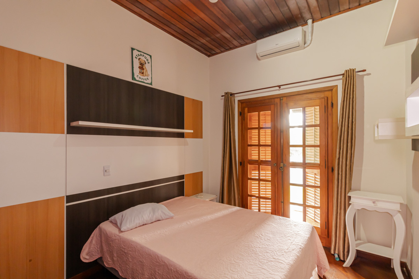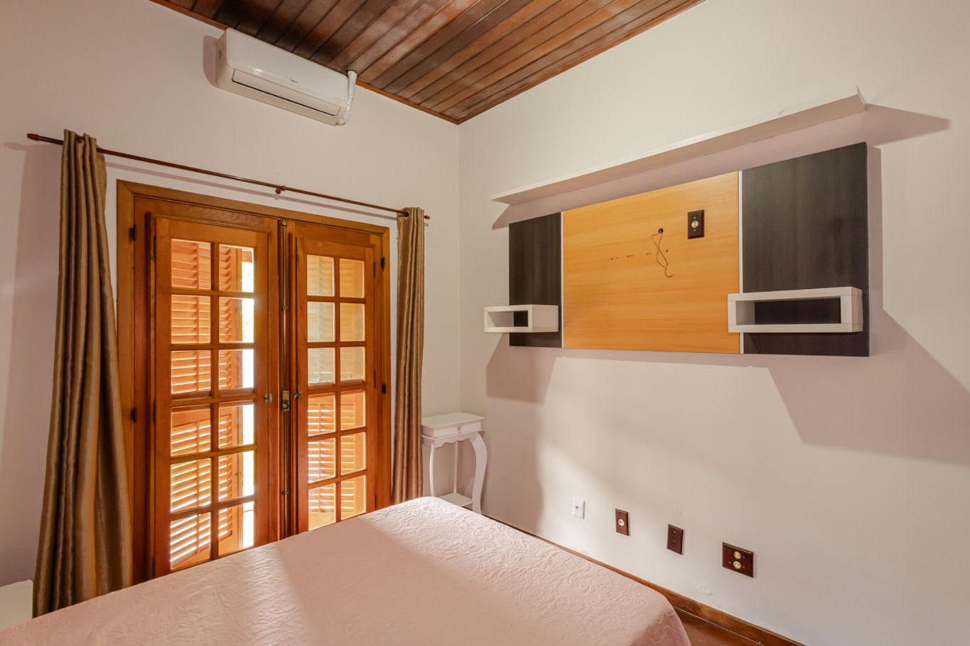 - Quarto 1(Suíte Master): cama king, ar-condicionado, closet e banheiro privativo com banheira de hidromassagem e chuveiro a gás