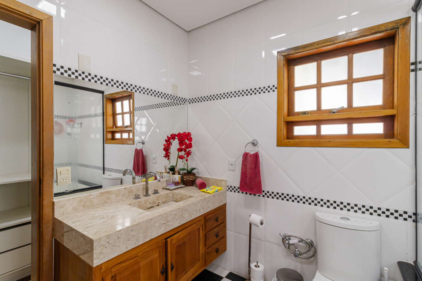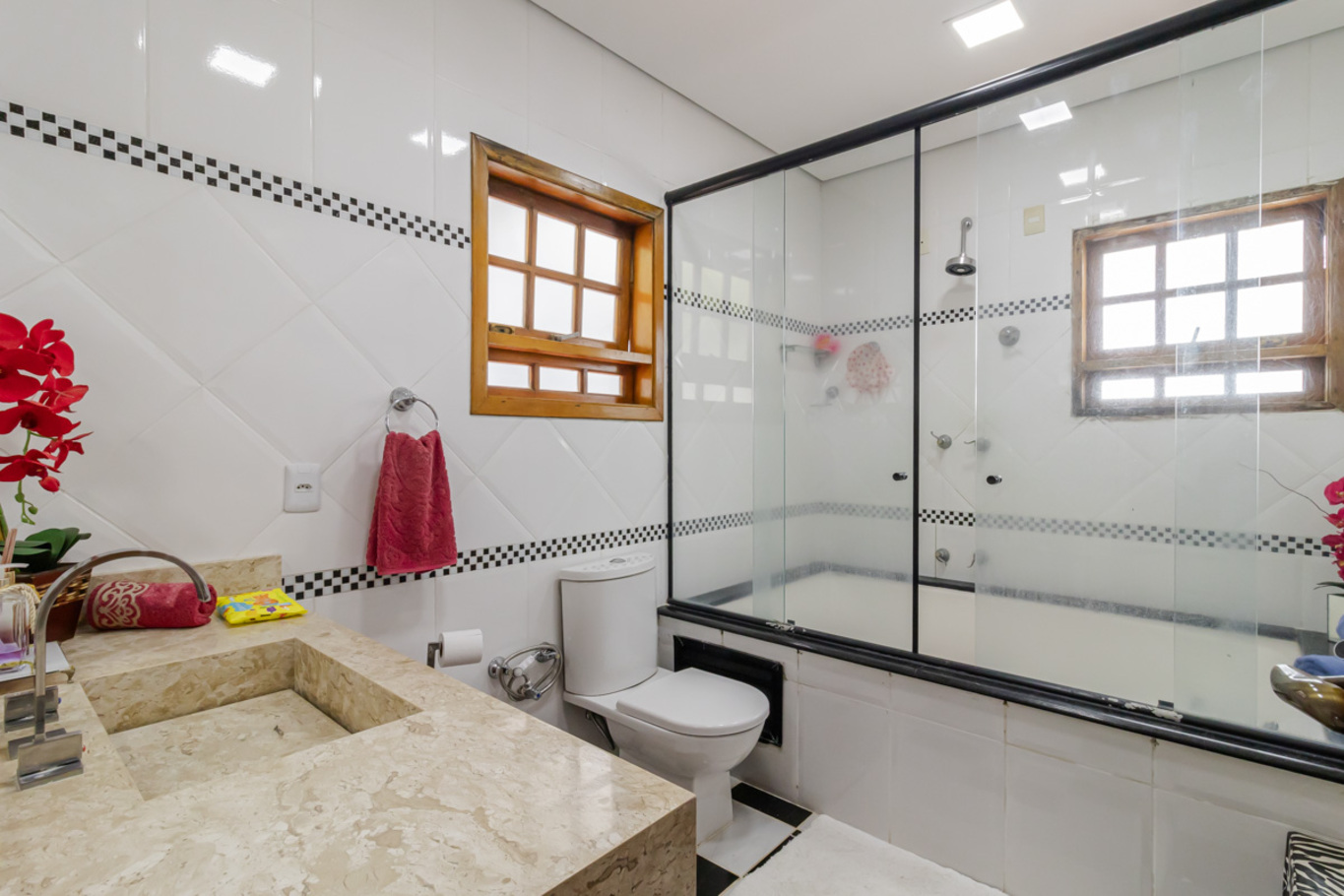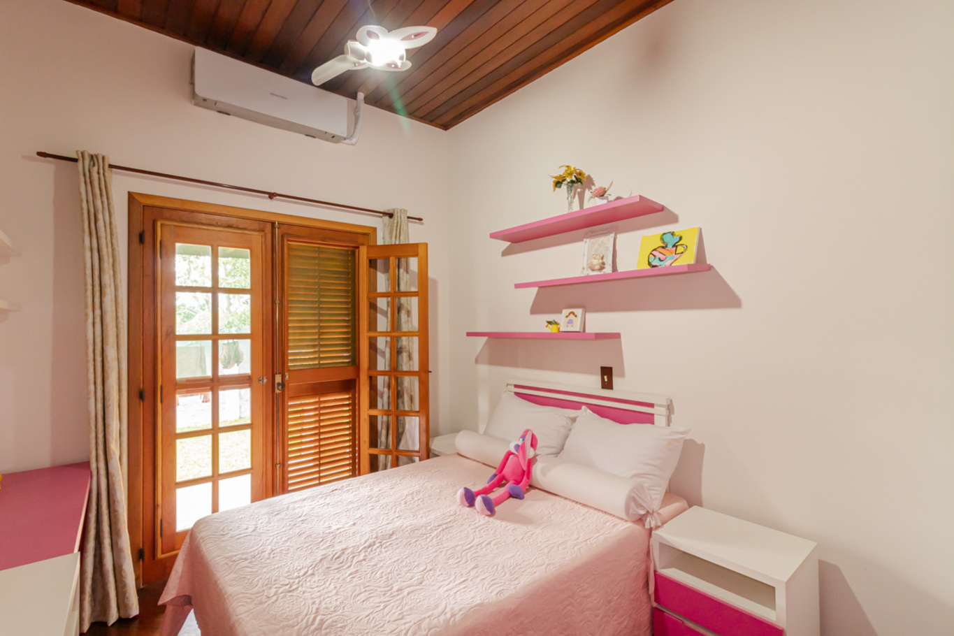 - Quarto 1(Suíte Master): cama king, ar-condicionado, closet e banheiro privativo com banheira de hidromassagem e chuveiro a gás