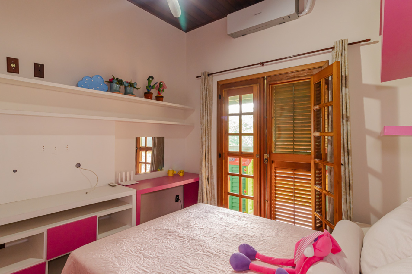 - Quarto 3: cama de casal, ar-condicionado e armário