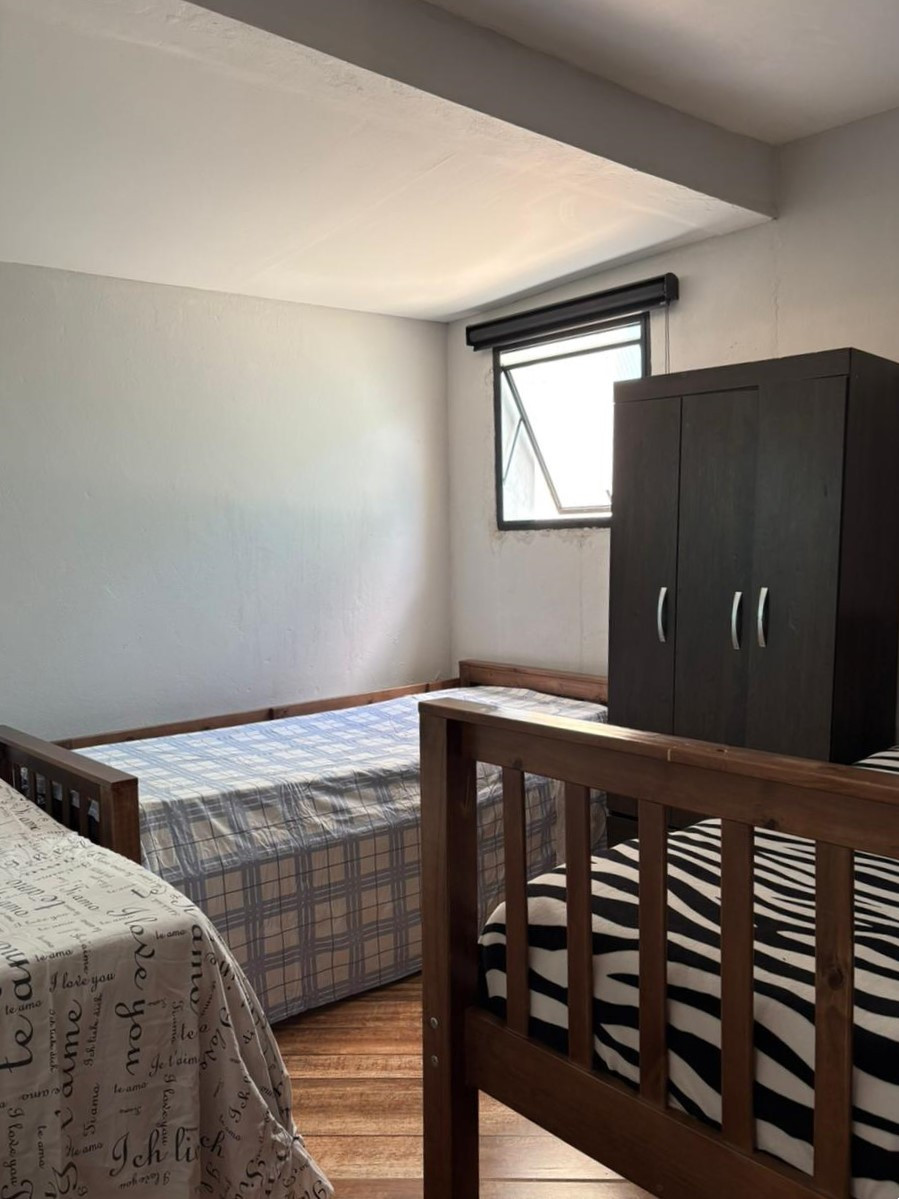 - No quarto 2 há 2 camas de solteiro, 1 cama de casal e 3 colchões de solteiro