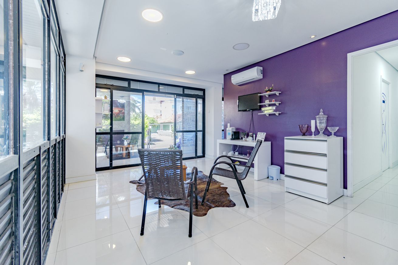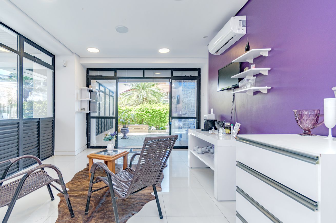 - Sala com ar-condicionado, TV, sistema de som, poltrona, cadeiras e mesa de centro