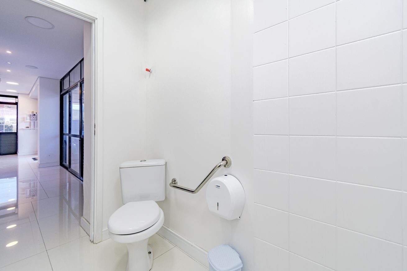 - Banheiro com chuveiro elétrico sem box, banheiro adaptado para PCD (vaso sanitário), lavabo e banheiro adicional com chuveiro elétrico sem box