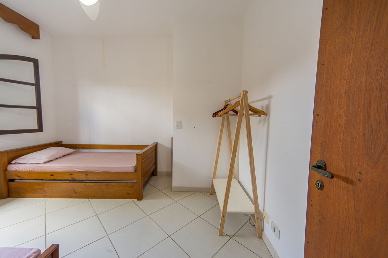 - Quarto 1: bicama e cama de solteiro, ar-condicionado, ventilador de teto, armário e cabideiro