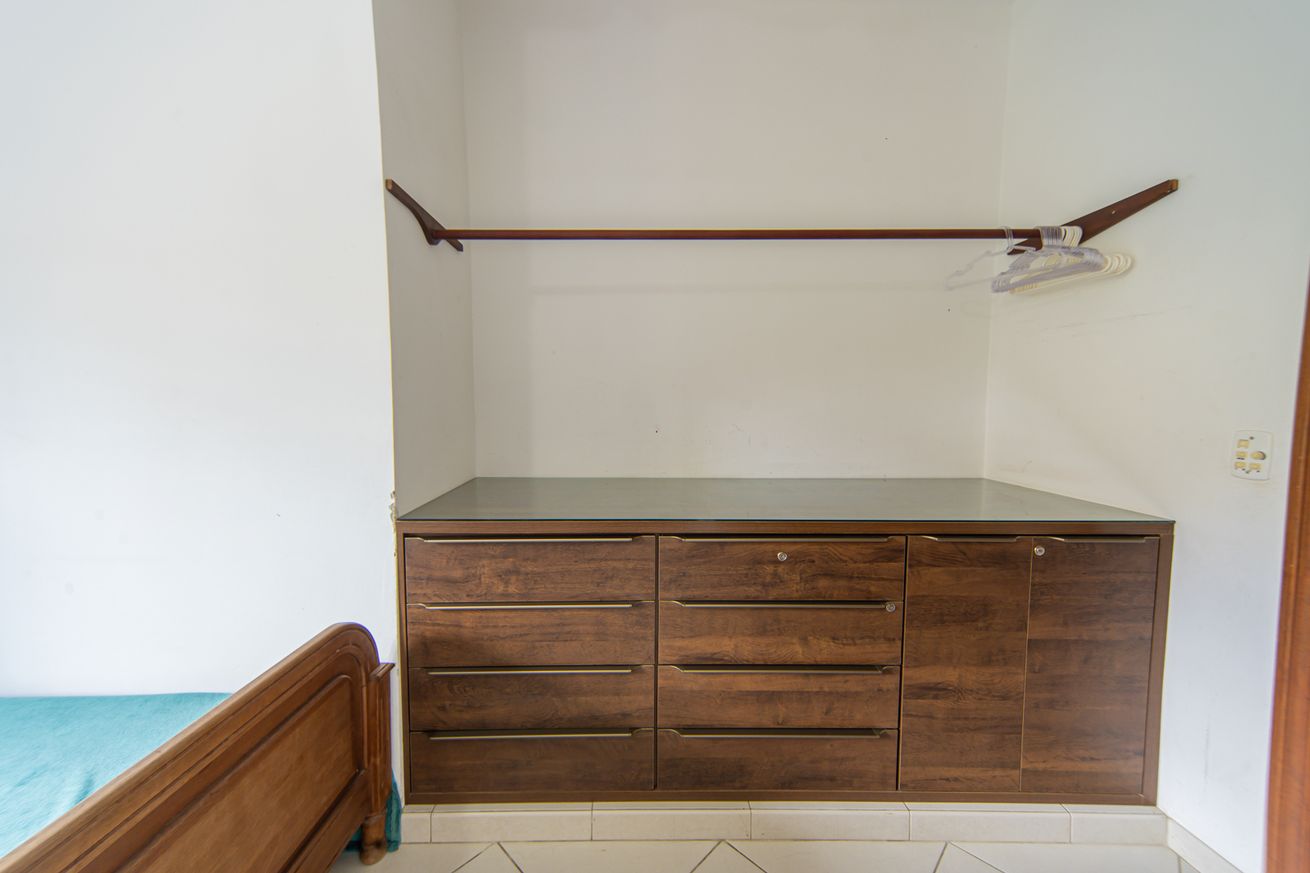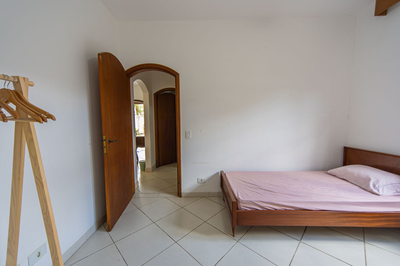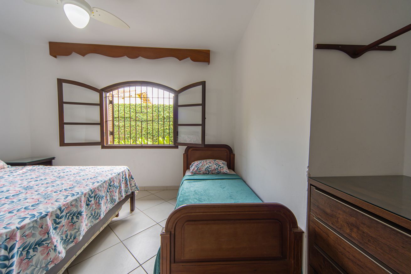- Quarto 2: cama de casal, ar-condicionado, ventilador de teto, armário e cômoda