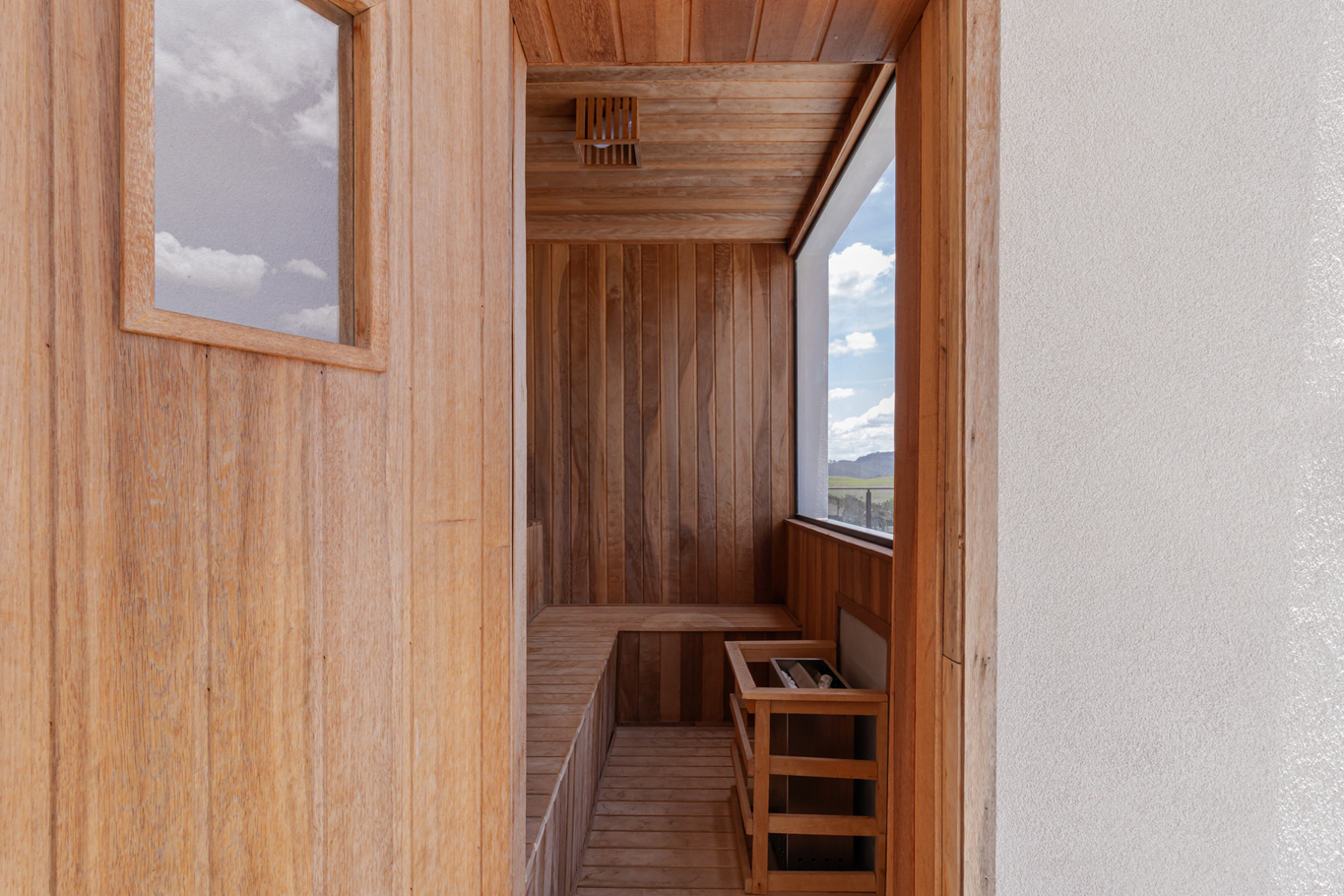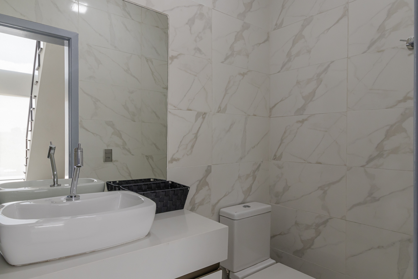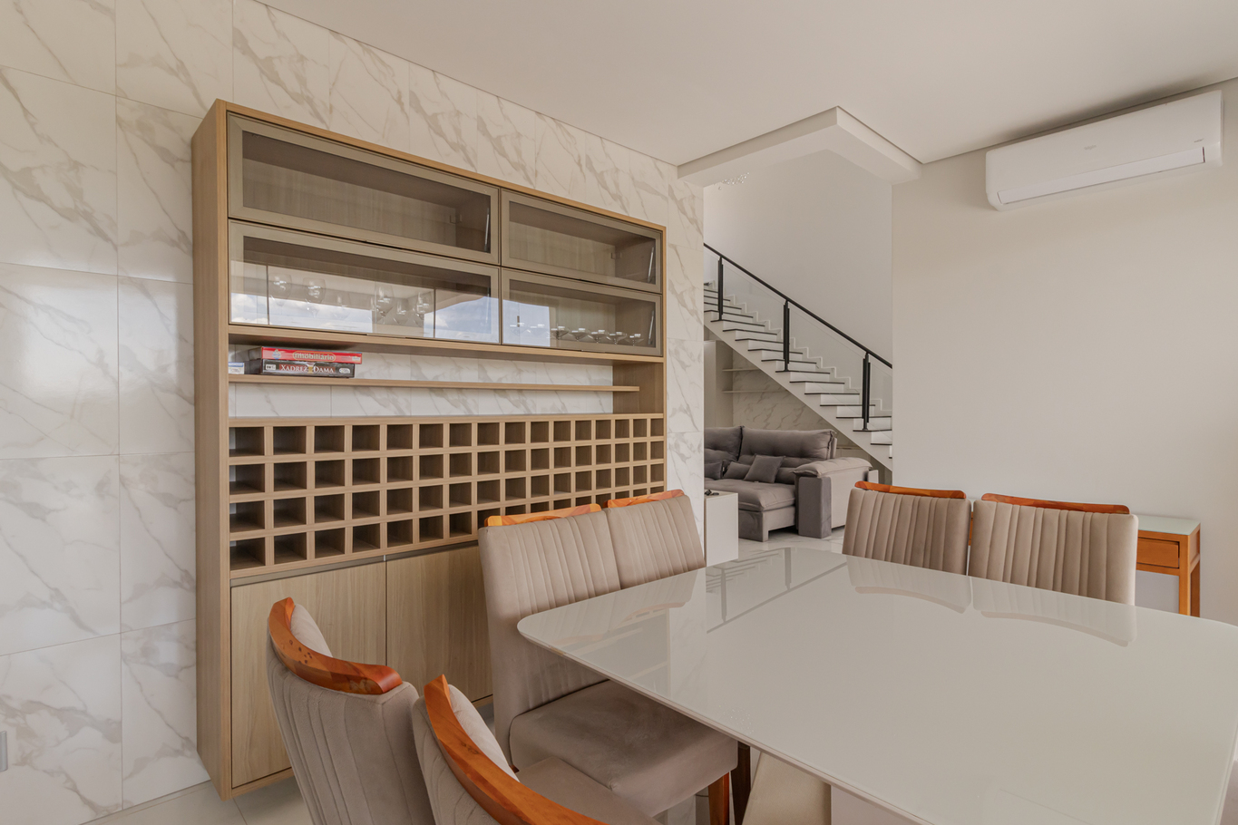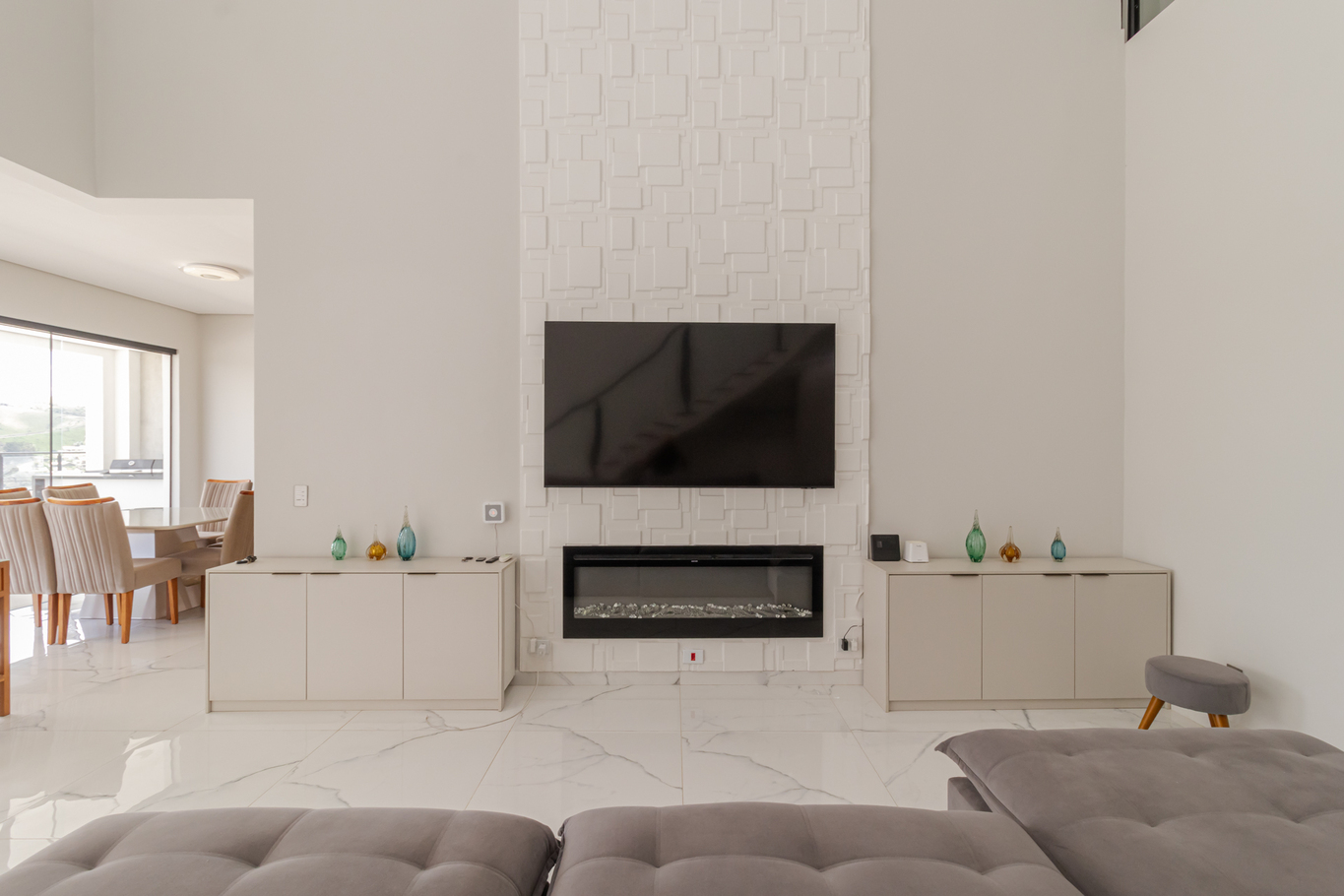 - Sala climatizada com sofá confortável e Smart TV e integração aos espaços externos