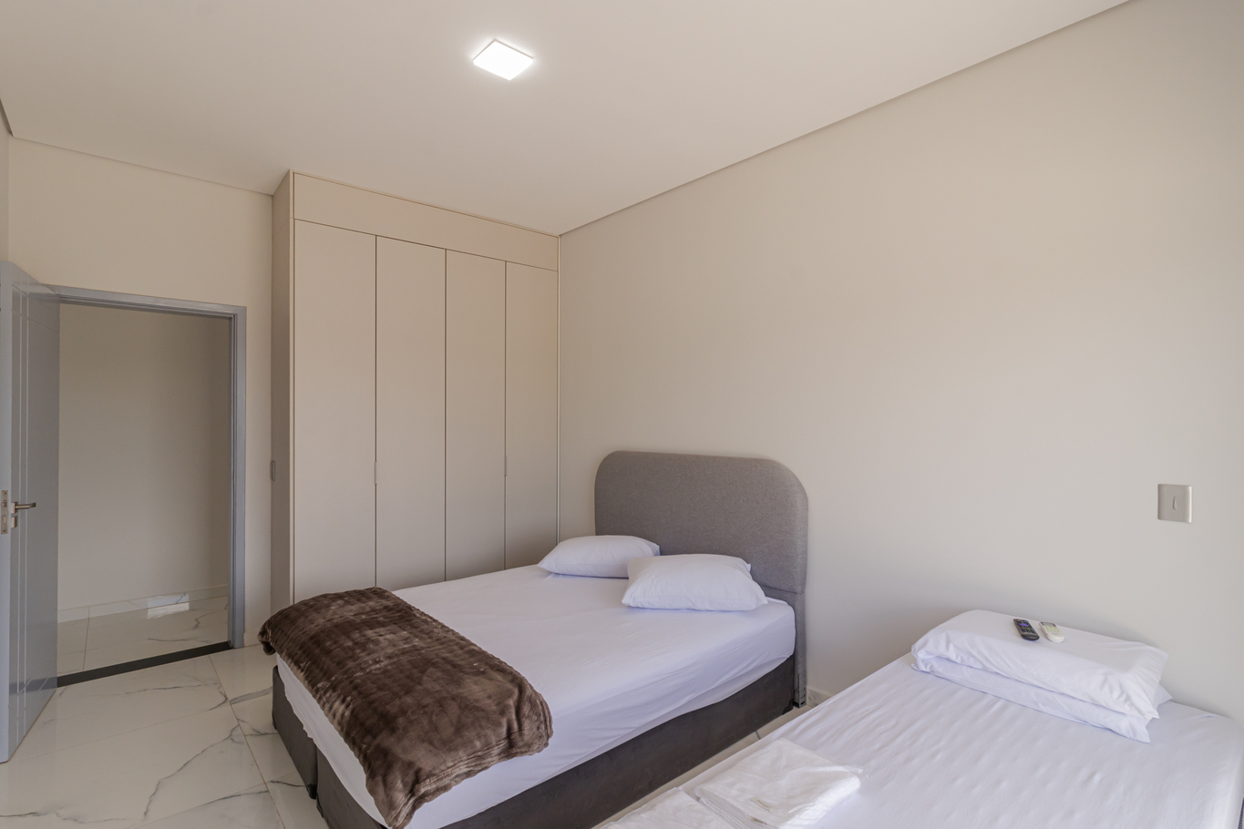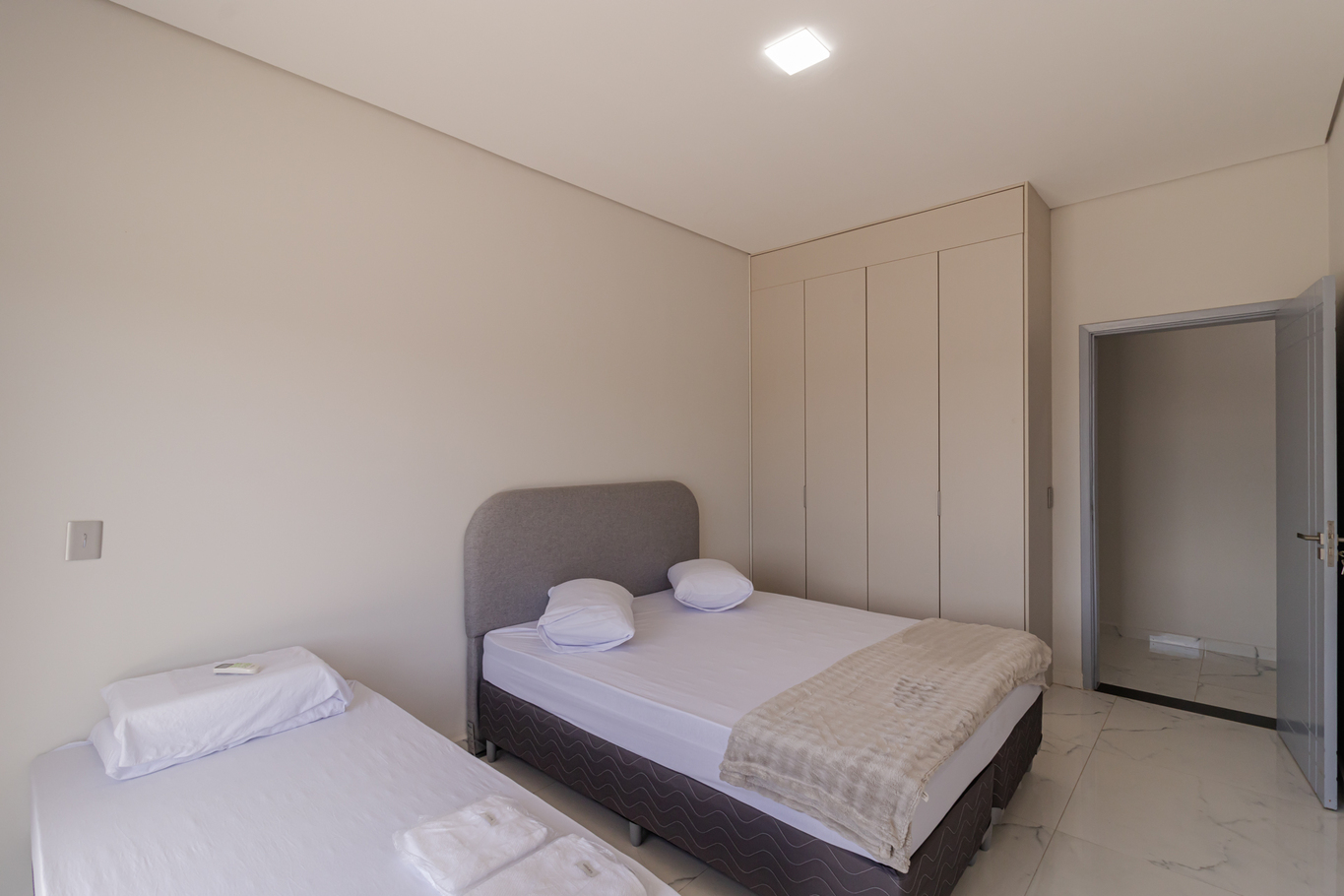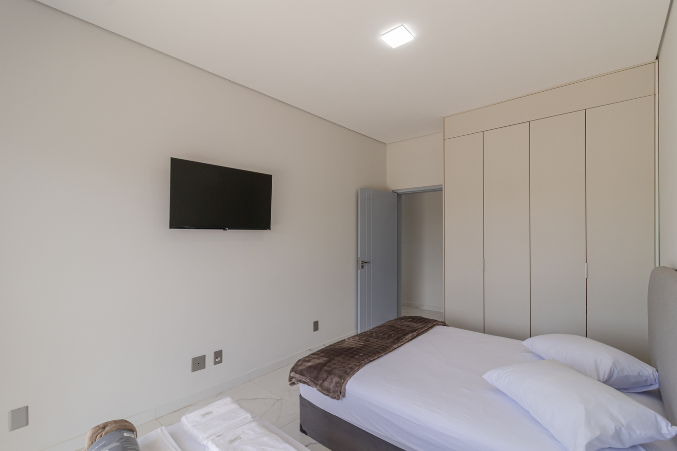 - Quarto 3: cama queen, bicama, ar-condicionado e Smart TV