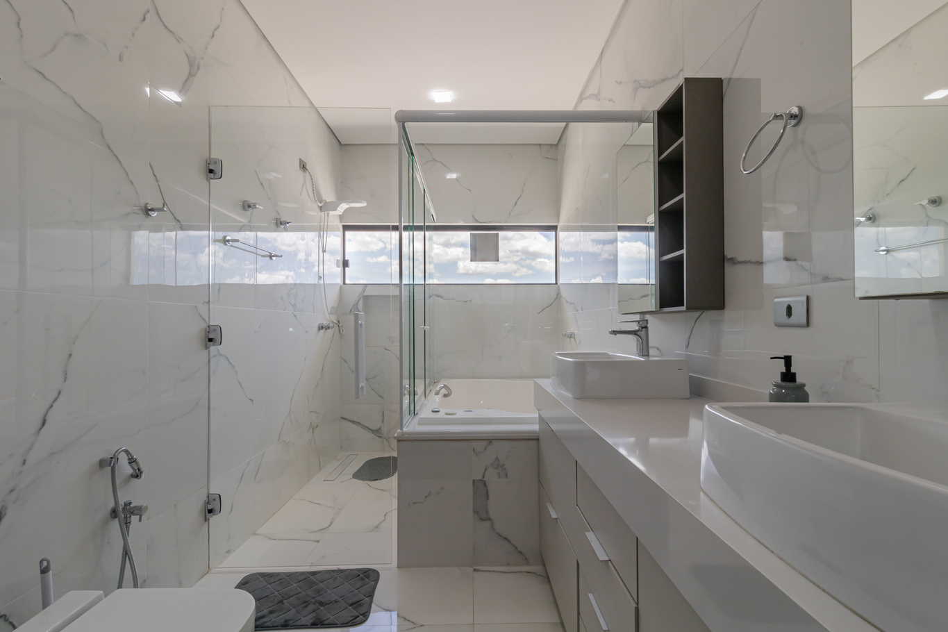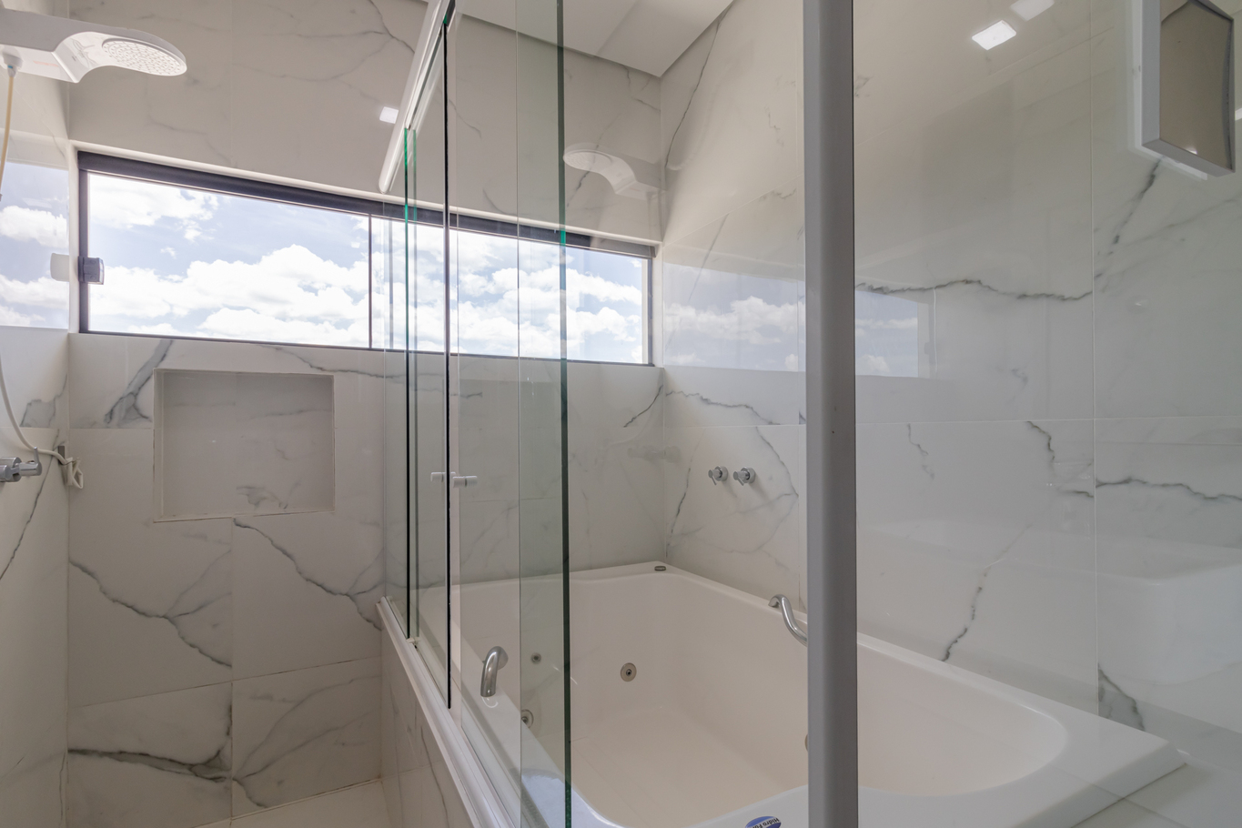 - Suíte 1: cama queen, bicama, ar-condicionado e banheira
