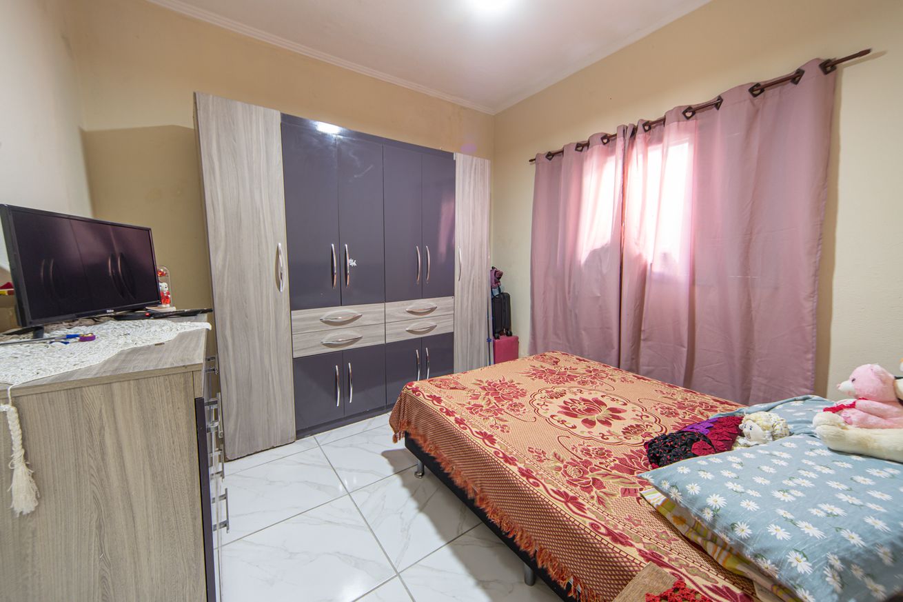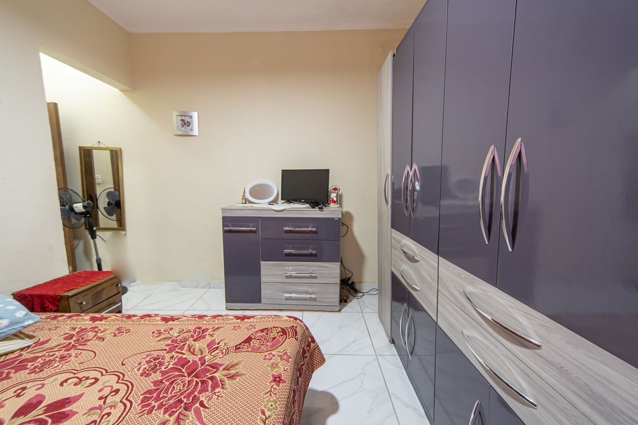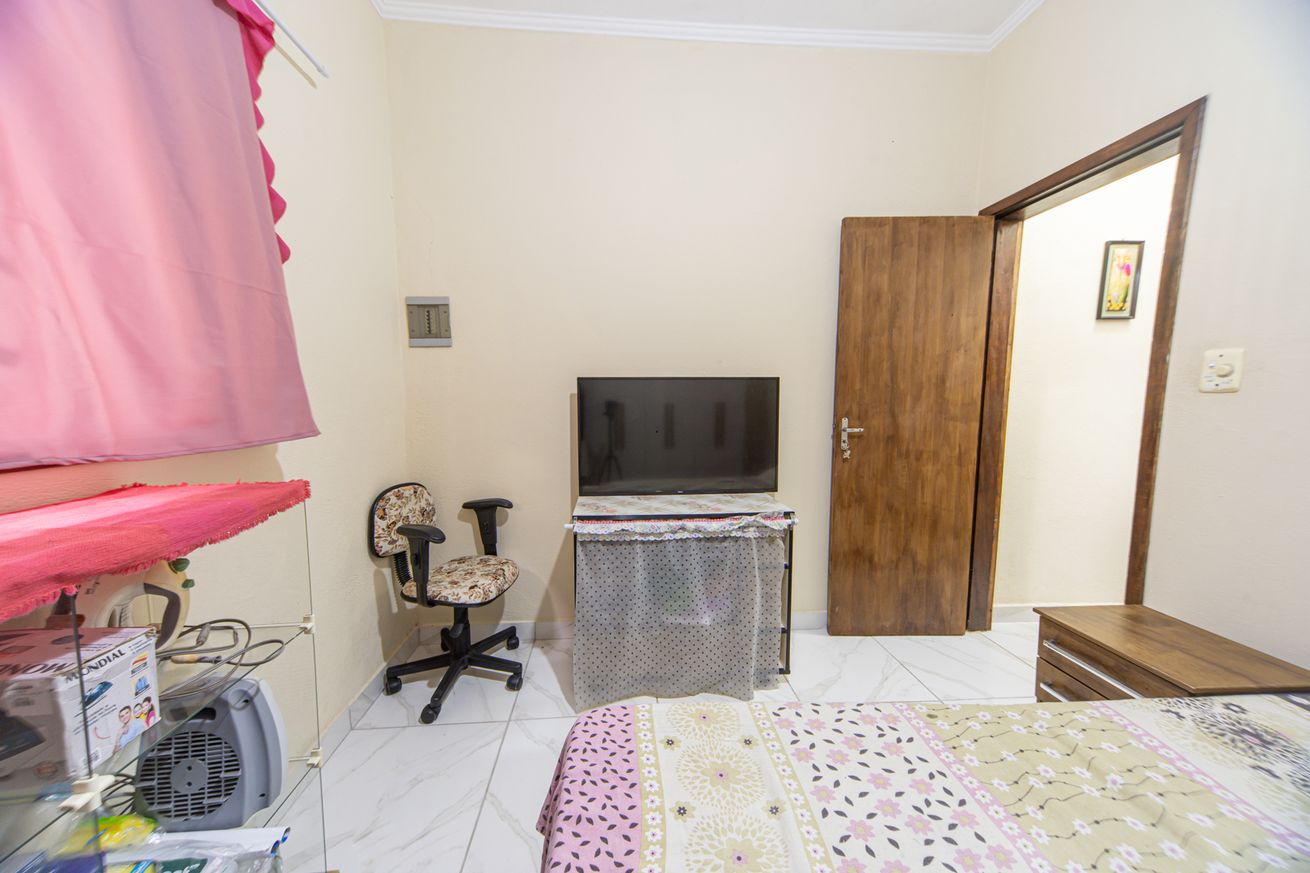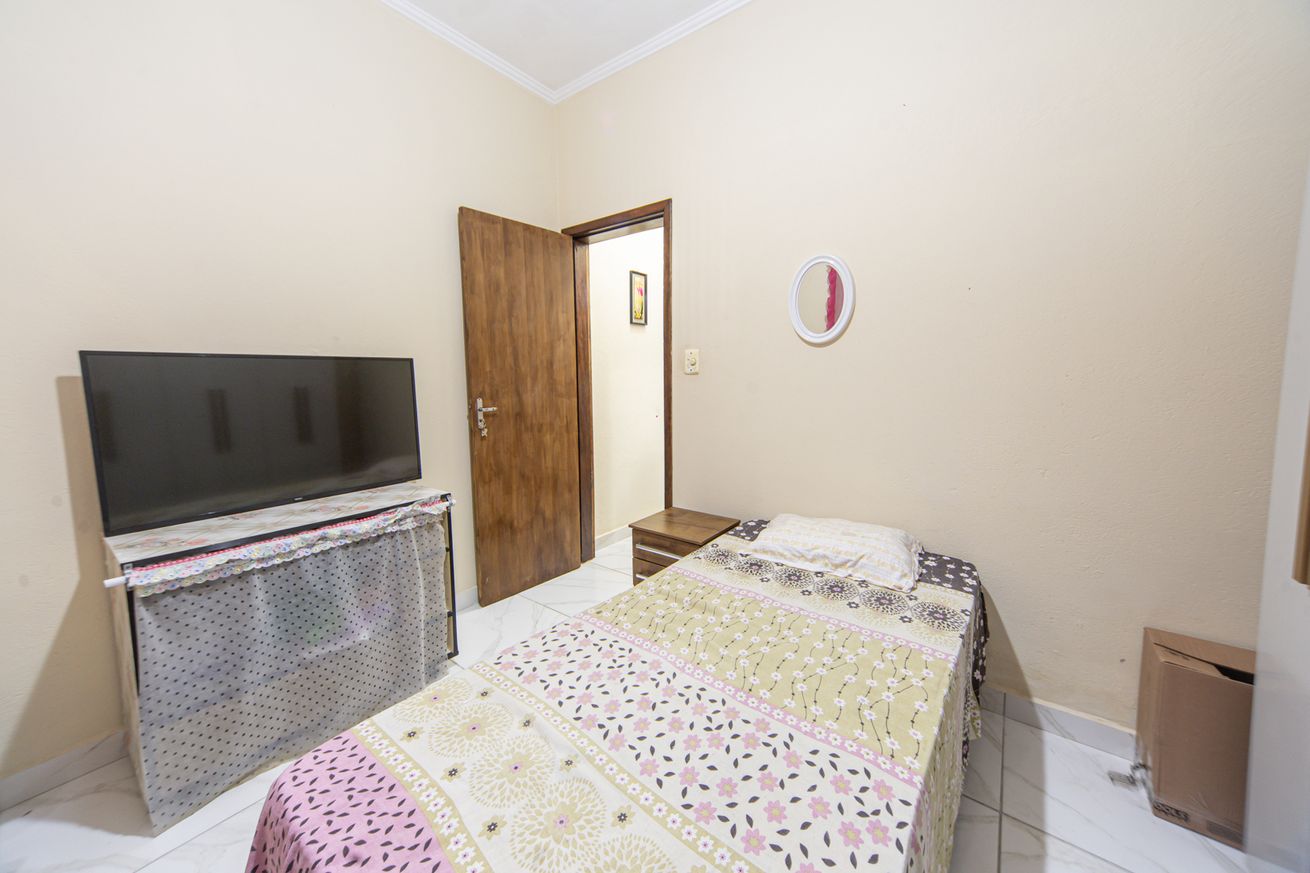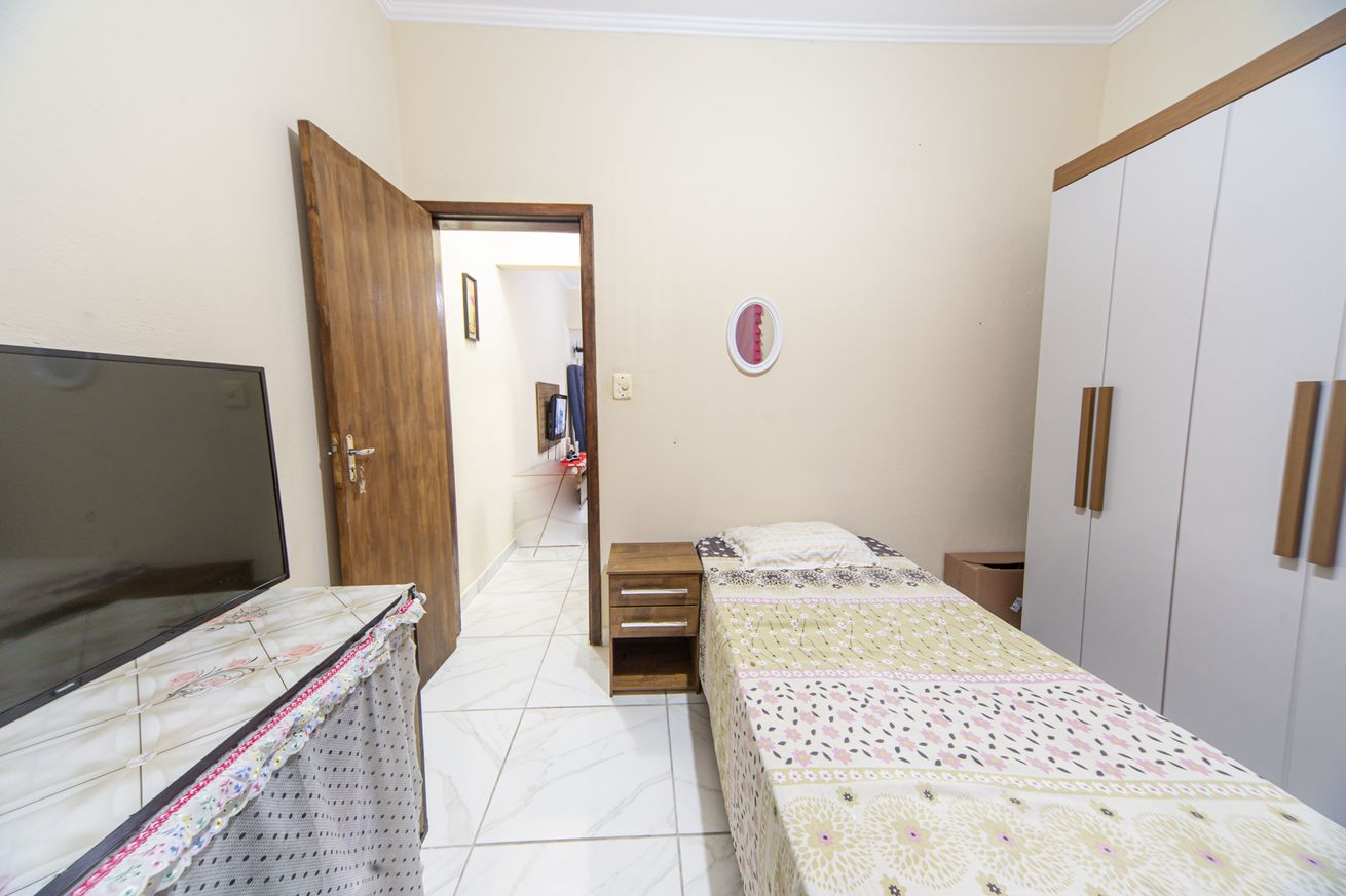 - Quarto 2 (suíte): 1 cama de casal, armário, smart TV, TV a cabo e ventilador. Banheiro privativo com chuveiro elétrico, box e secador de cabelo