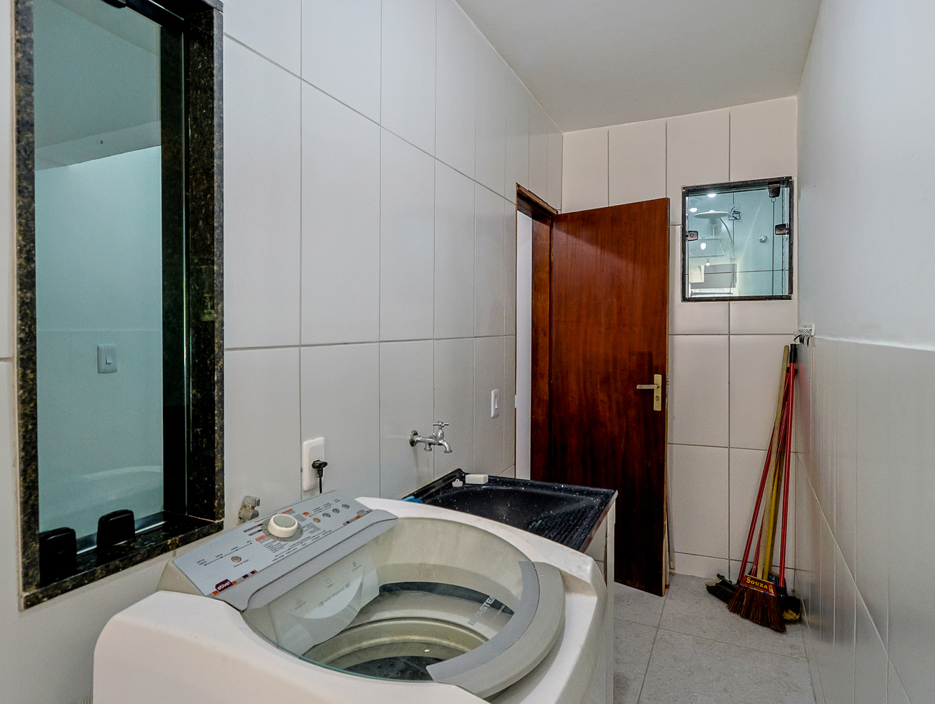- Lavanderia com máquina de lavar, ferro e tábua de passar
