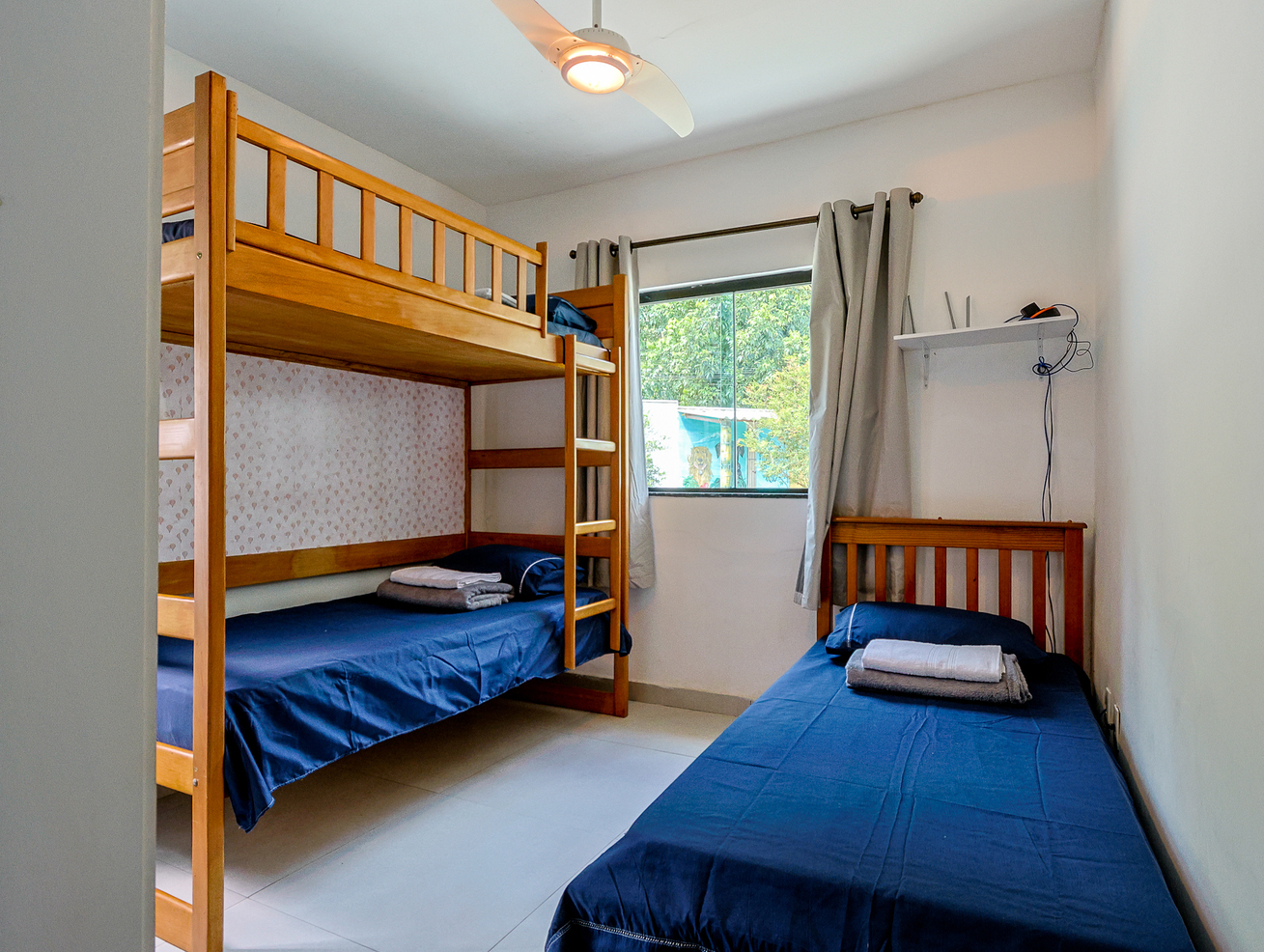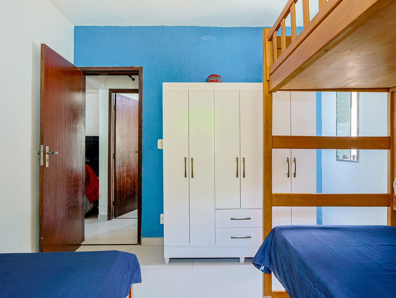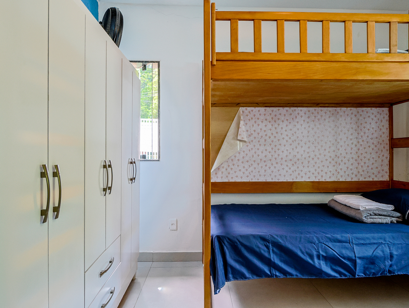 - Quarto 2: 1 beliche, 2 camas de solteiro (sendo 1 auxiliar), ventilador de teto e armário.