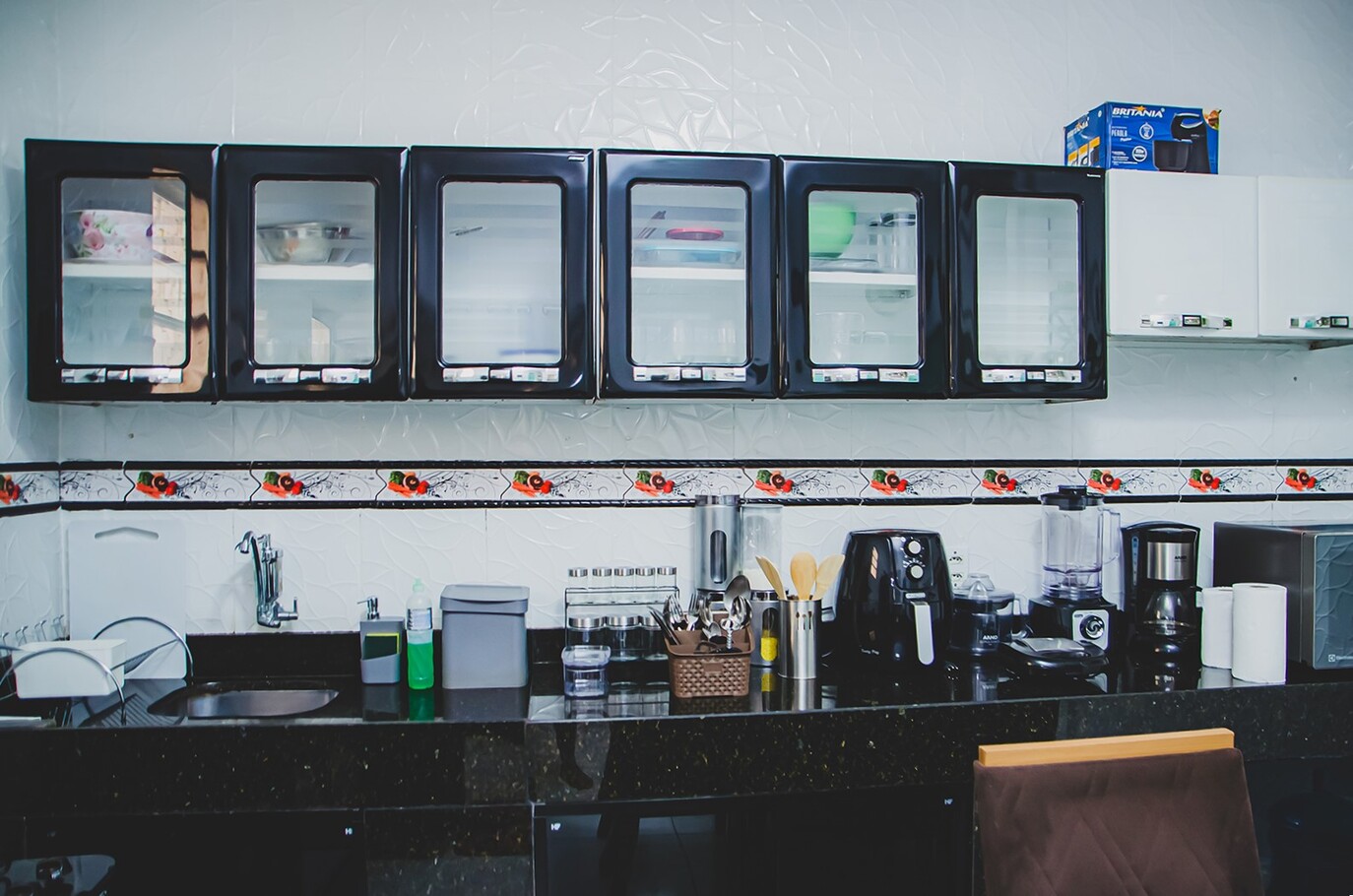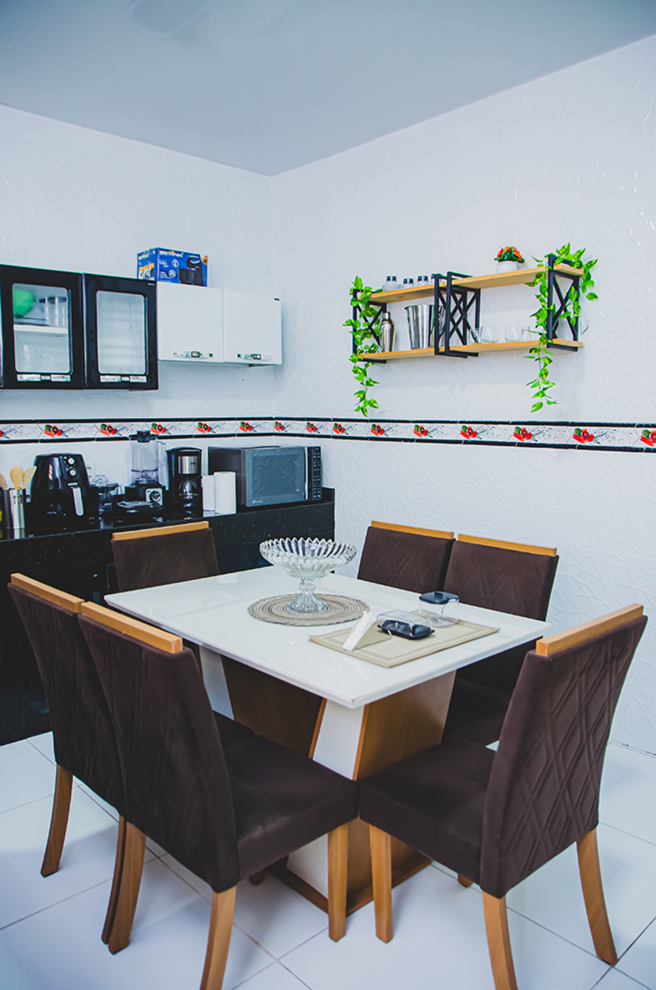 - Cozinha equipada com fogão, forno, geladeira, micro-ondas, freezer, cafeteira, fritadeira elétrica, sanduicheira e utensílios completos(exceto óleo e sal)