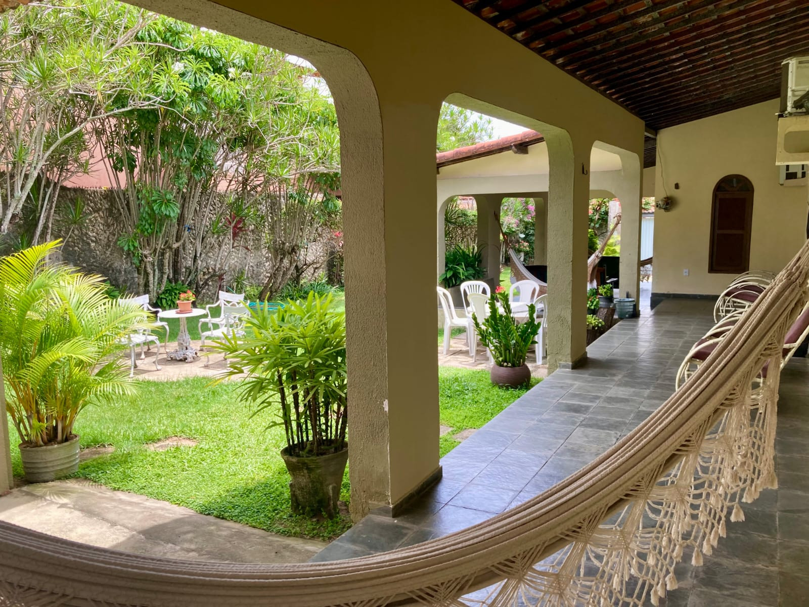 Para o seu lazer, oferecemos jardim amplo com mesas e cadeiras, rede de descanso, terraço coberto e espaço para banho de sol e bica. Não perca tempo e reserve agora mesmo sua estadia em Natal, Rio Grande do Norte!