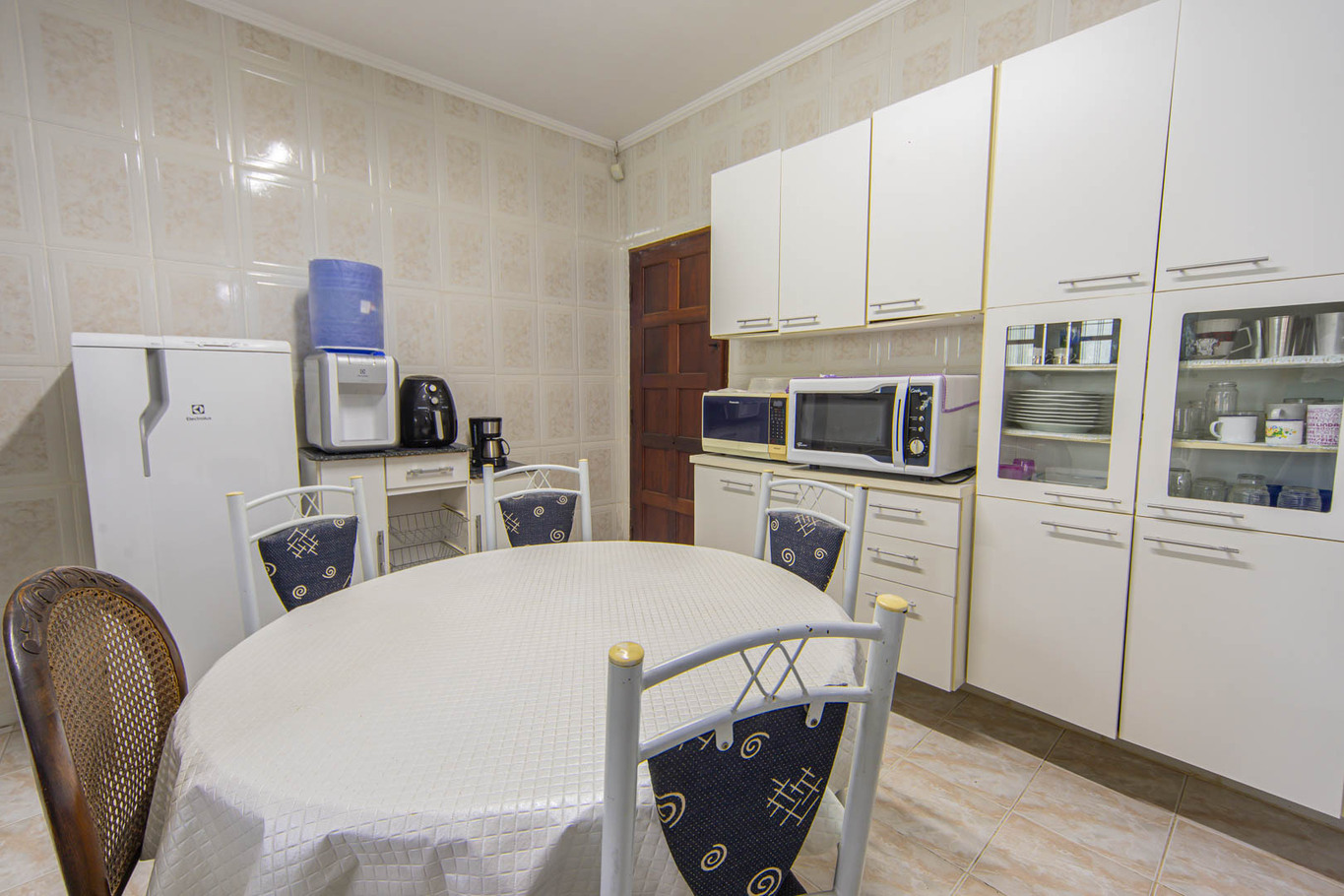 - Cozinha completa com fogão, forno, geladeira, freezer, microondas, cafeteira, liquidificador, fritadeira, torradeira e utensílios completos(exceto óleo e sal)