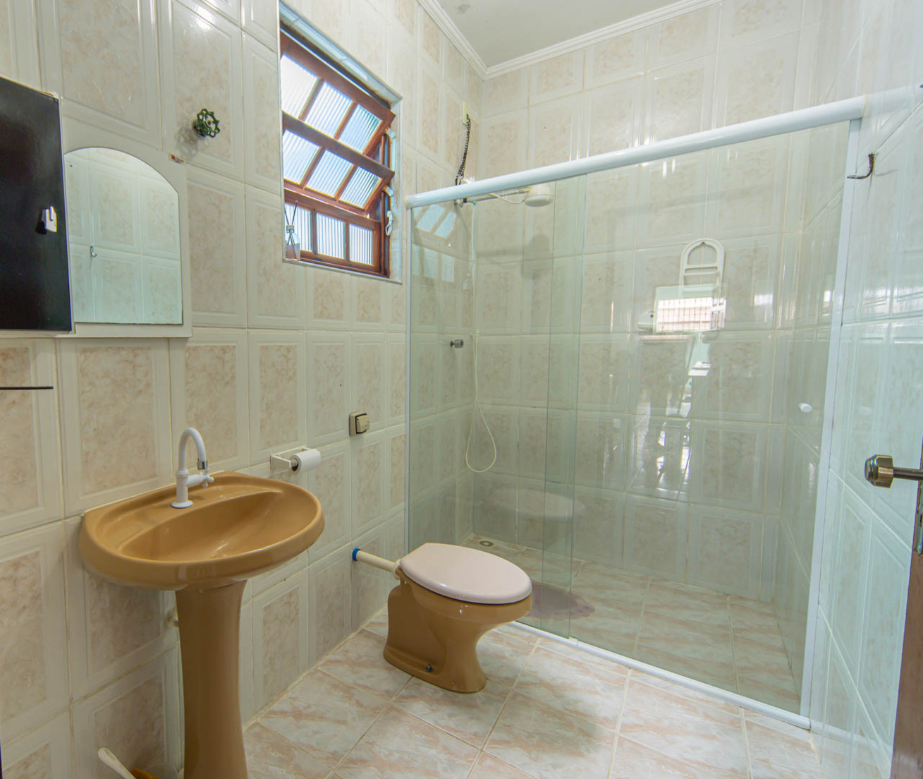 - Banheiro social interno: conta com chuveiro elétrico e box de vidro/acrílico