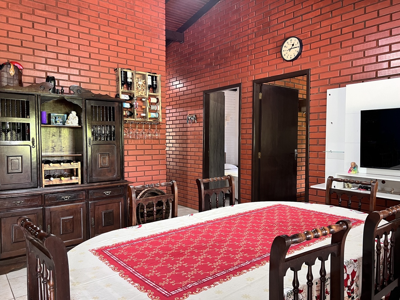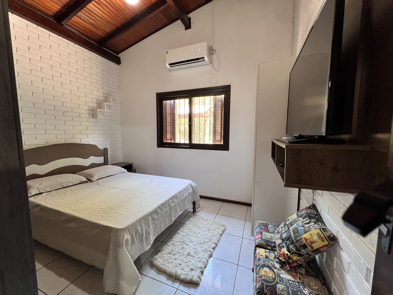 - Quarto 2: cama de casal, ar-condicionado, roupeiro, mesa de cabeceira e TV