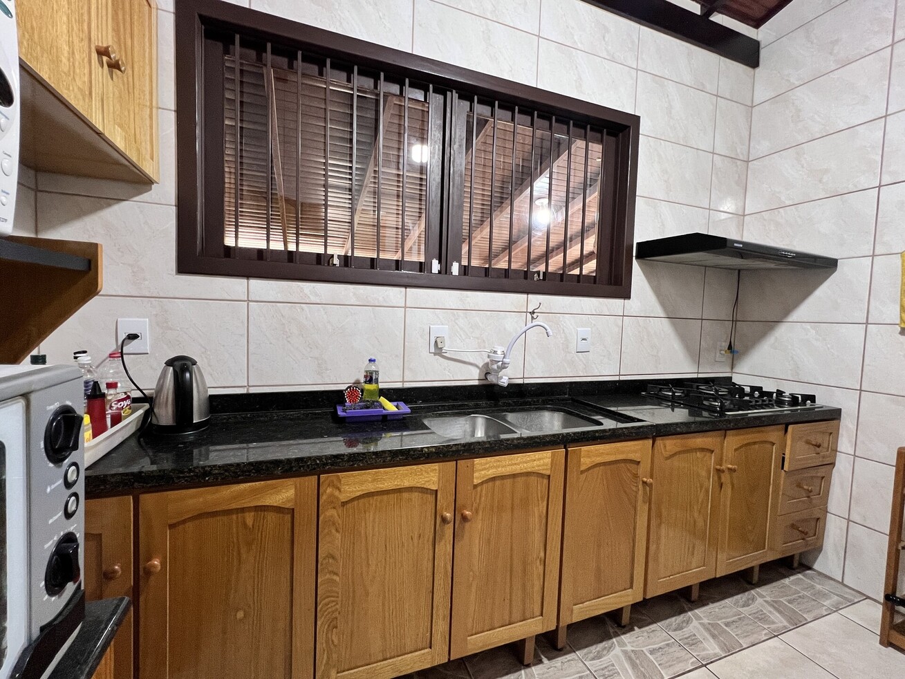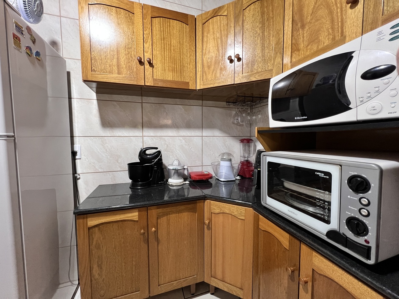 - Cozinha equipada com fogão, forno, geladeira, micro-ondas, liquidificador, torradeira, forno elétrico e utensílios completos(exceto óleo e sal)