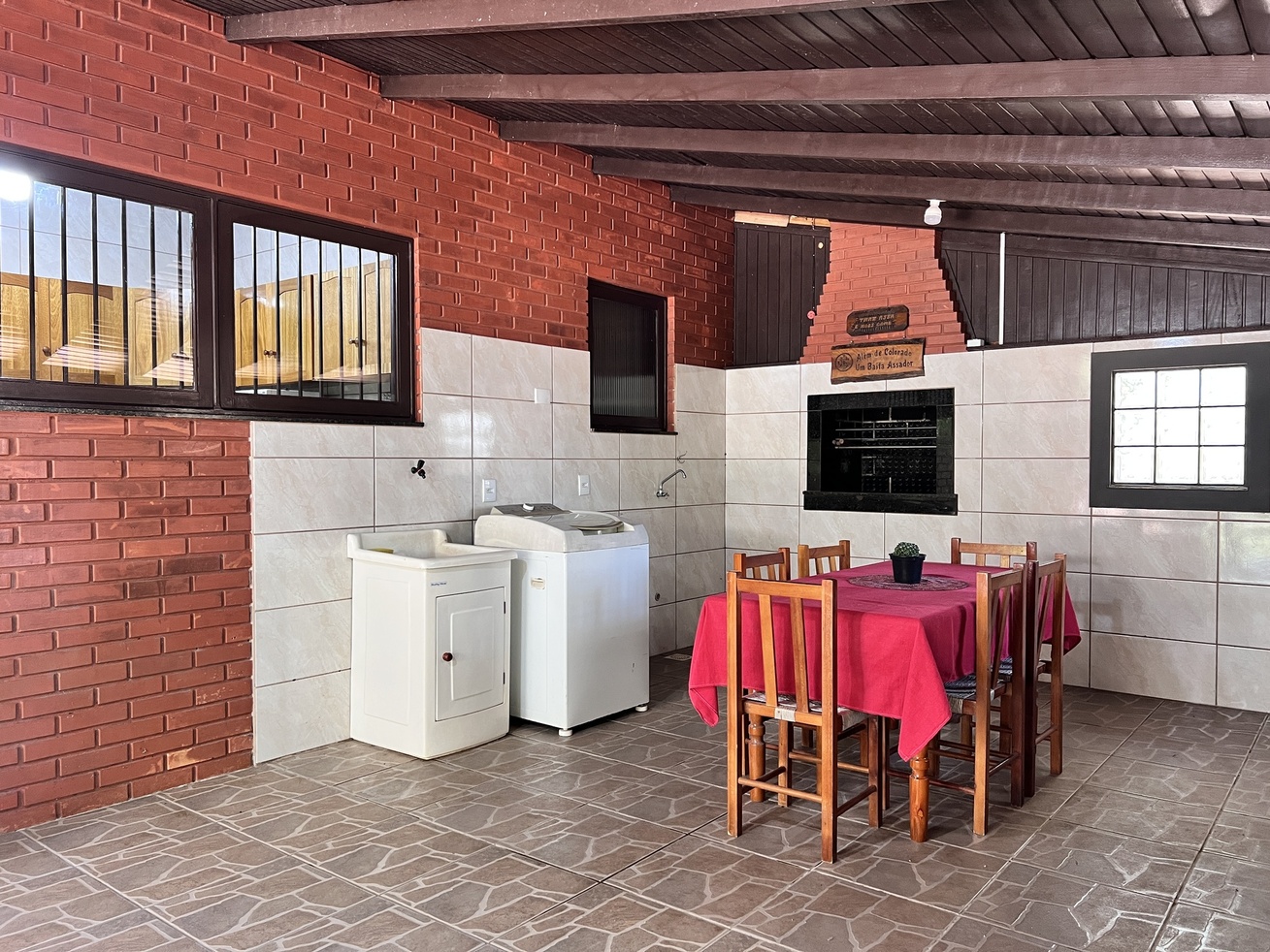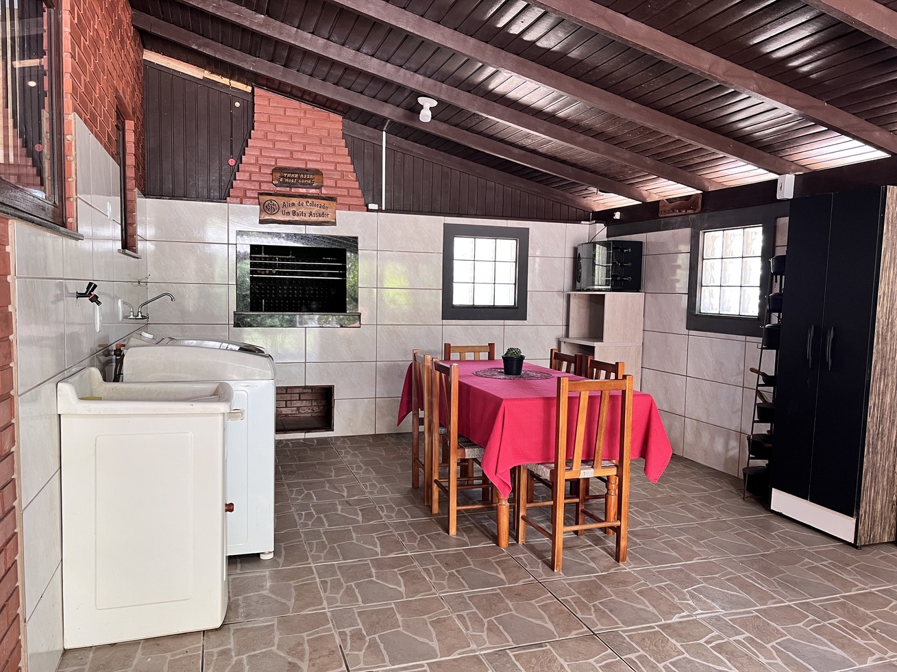 - Área externa junto à natureza com churrasqueira, mesa e pia