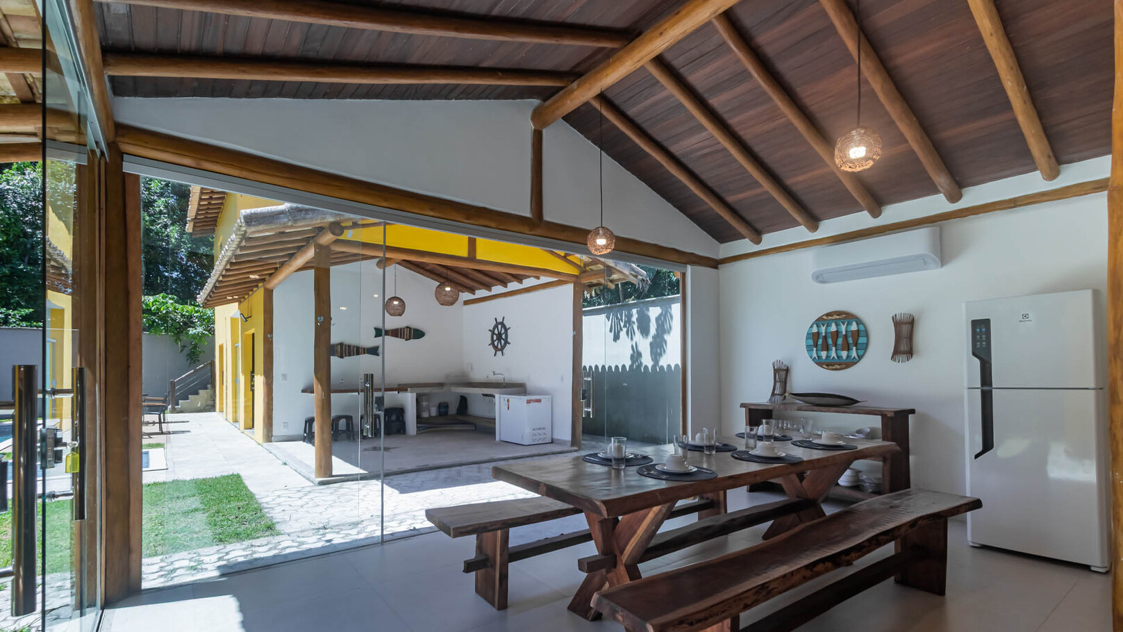 - Cozinha Gourmet super equipada com fogão, forno, micro-ondas, geladeira, freezer, airfryer, purificador, mesa de jantar externa e utensílios diversos(exceto óleo e sal)
