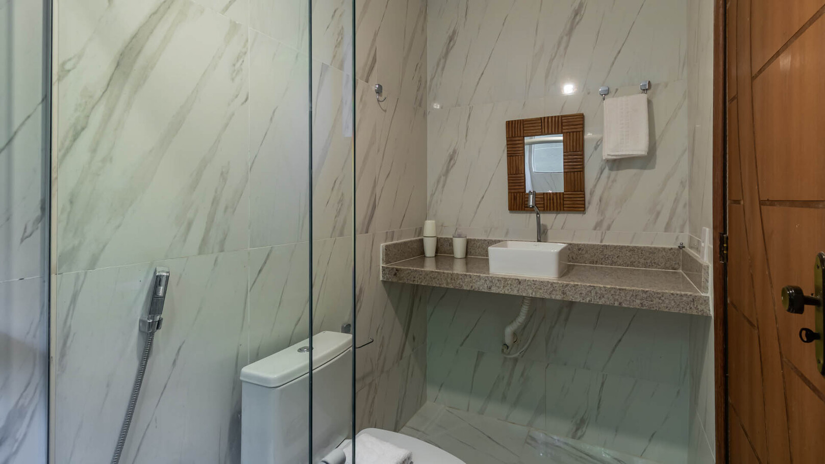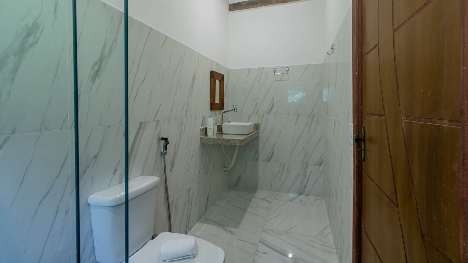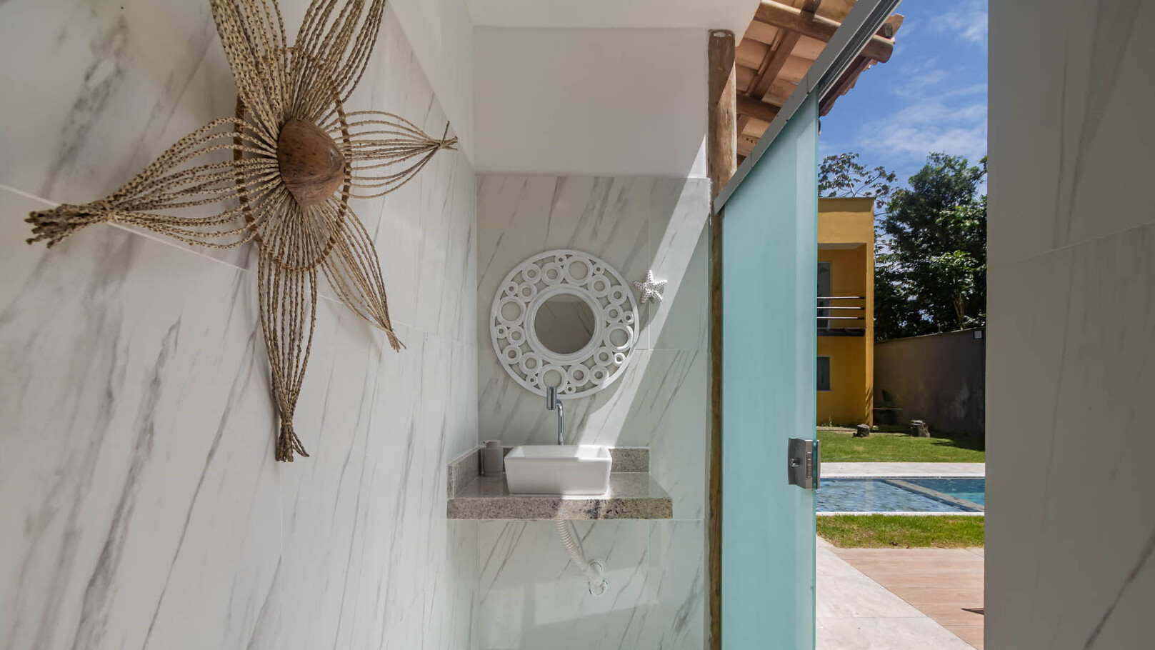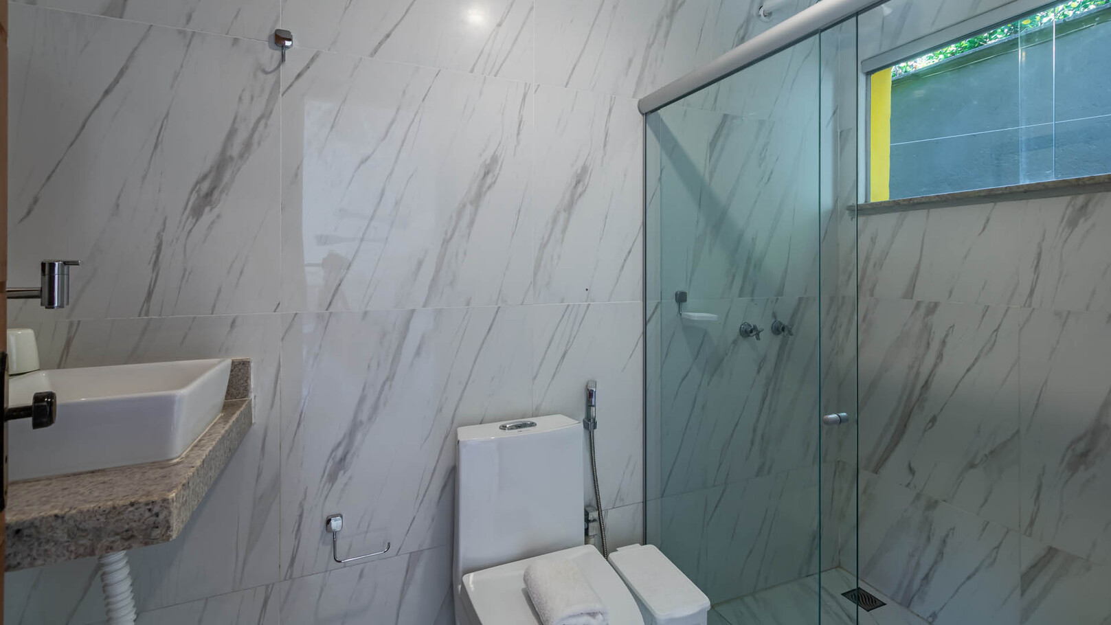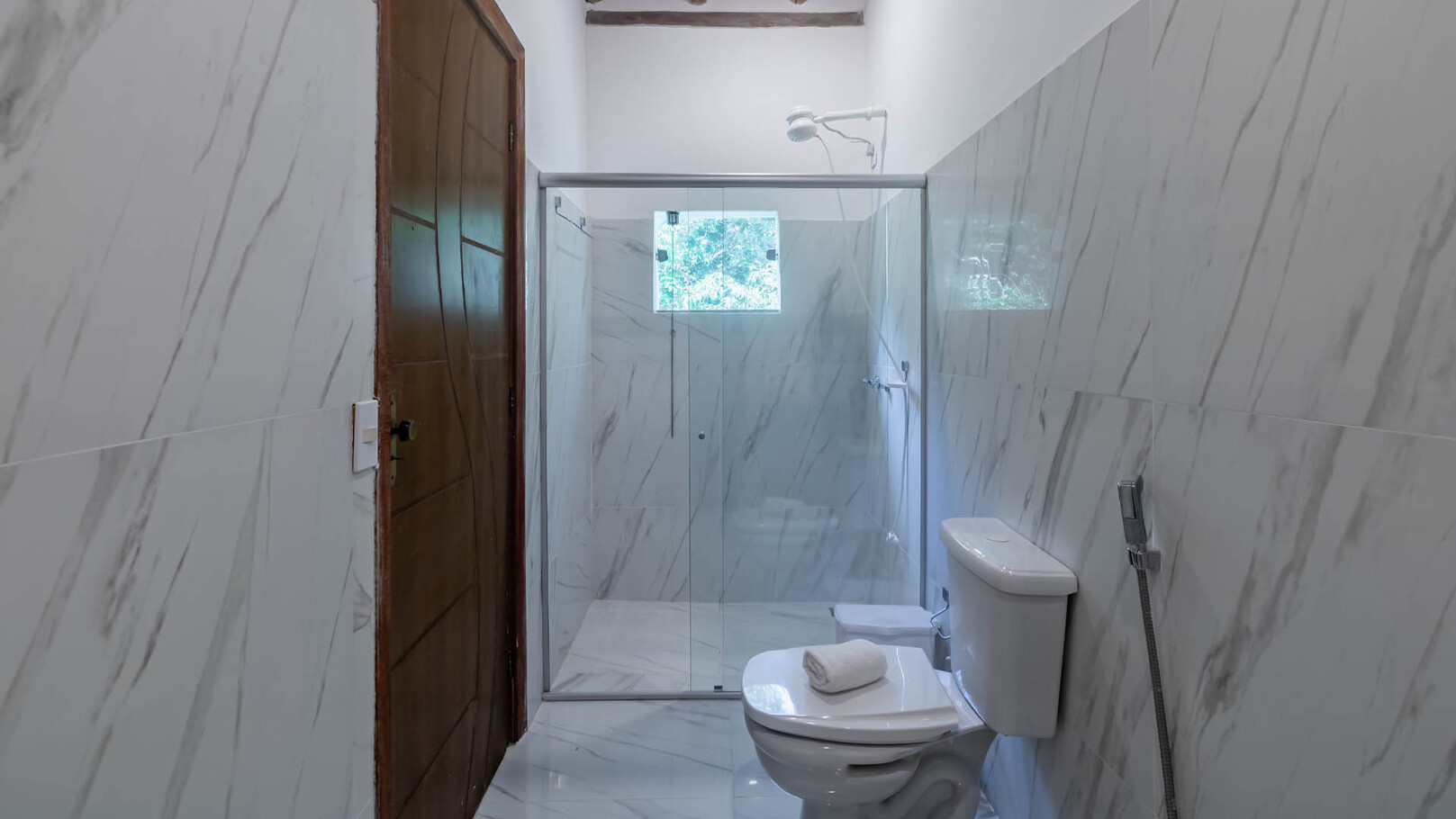 - Banheiros: 5 suítes com chuveiro elétrico e box, e 2 lavabos sociais