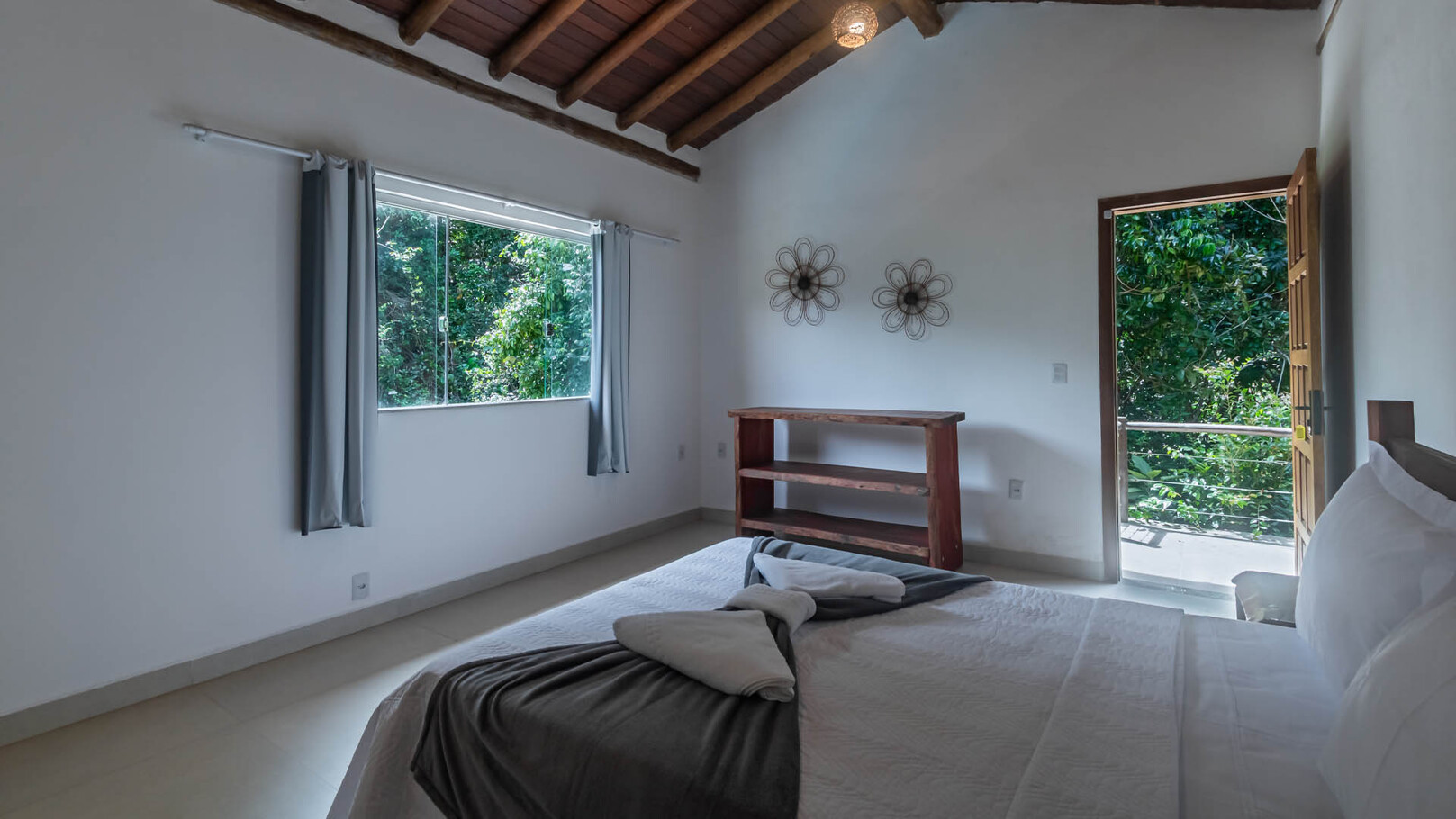 - Quarto 2 (Suíte): Cama de casal, ar-condicionado, armário, edredom/cobertor
