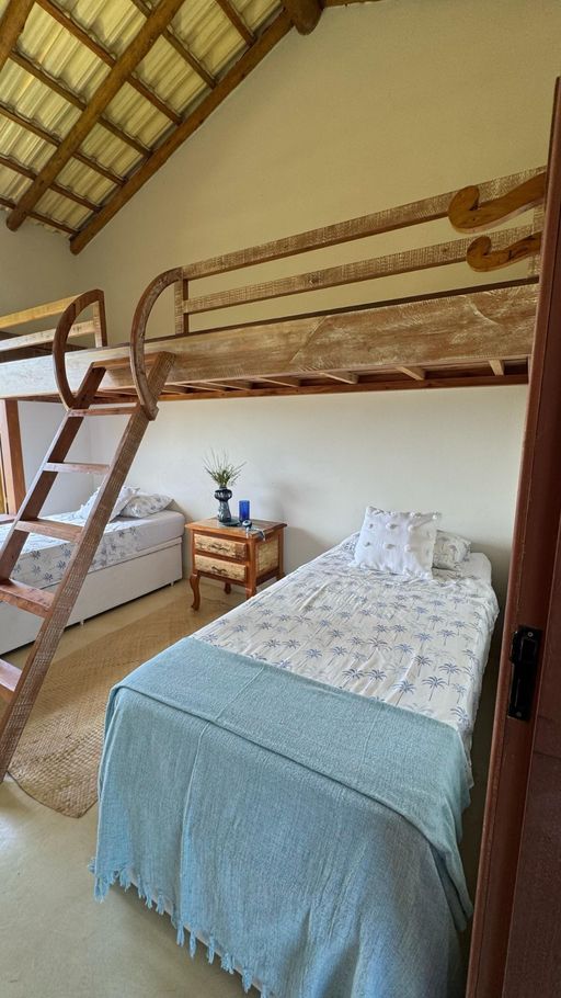 - Quarto 3: 2 beliches e duas camas de solteiro, ar-condicionado, ventilador de teto, armário e cômoda