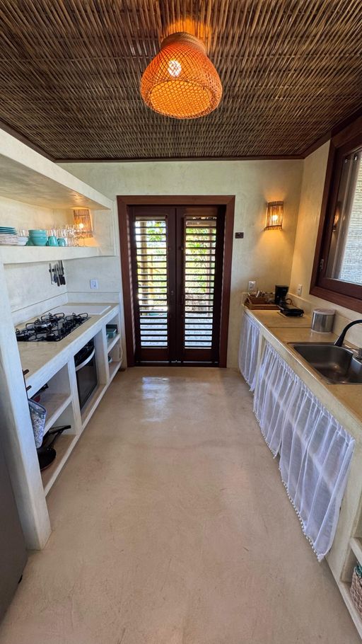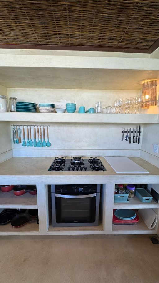 - Cozinha equipada com fogão, forno elétrico, cooktop, geladeira, freezer, micro-ondas, fritadeira, cafeteira, liquidificador, torradeira, mesa para até 10 pessoas na varanda e utensílios completos(exceto óleo e sal)