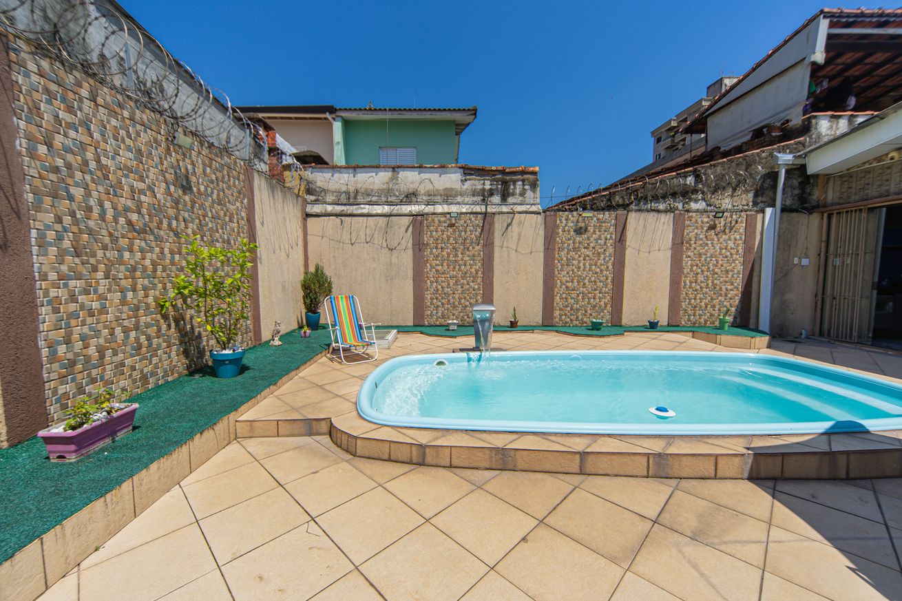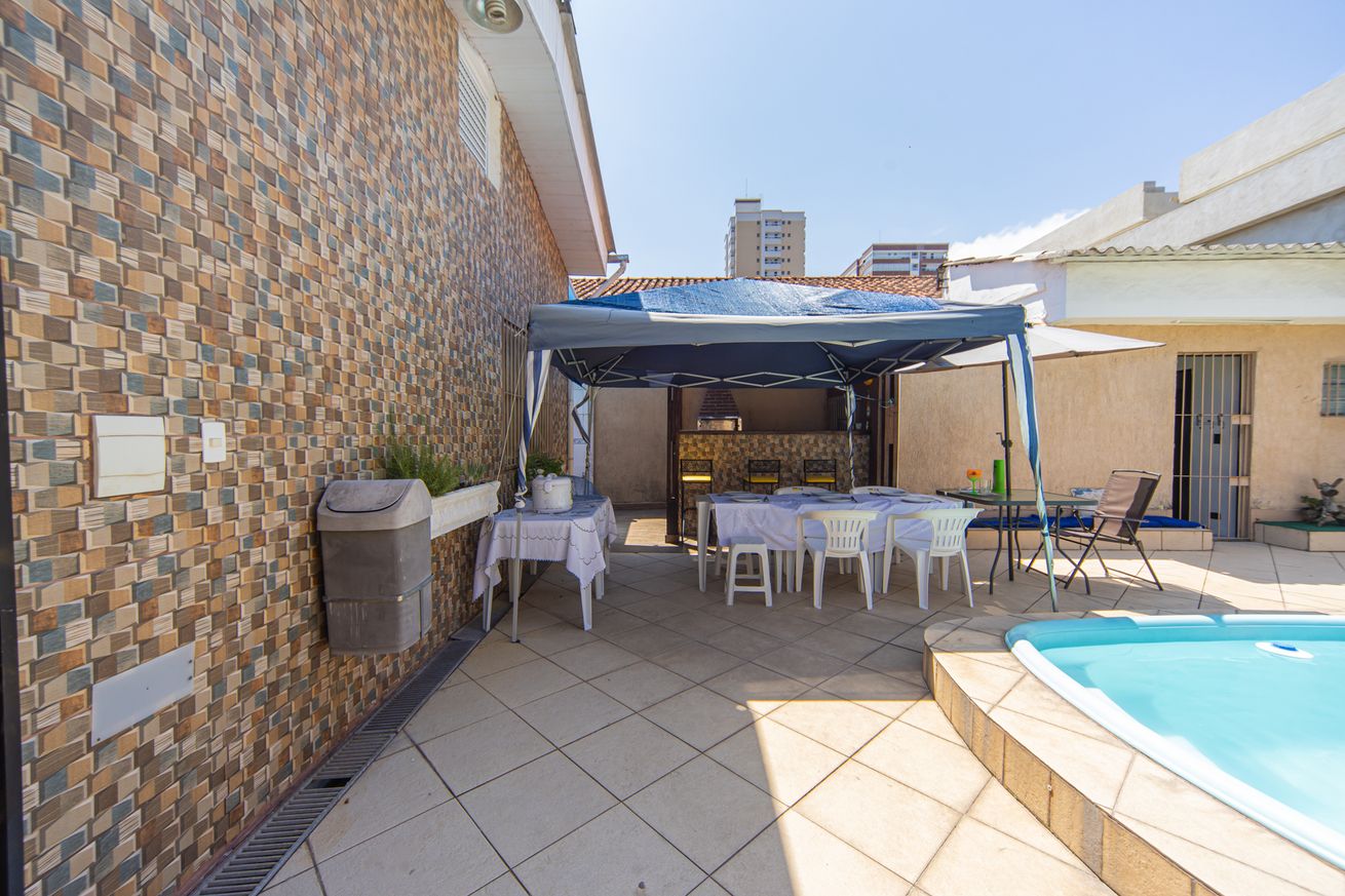 - Área externa com piscina com hidro e cascata, churrasqueira com pia, cooler e mesas para refeições e descanso