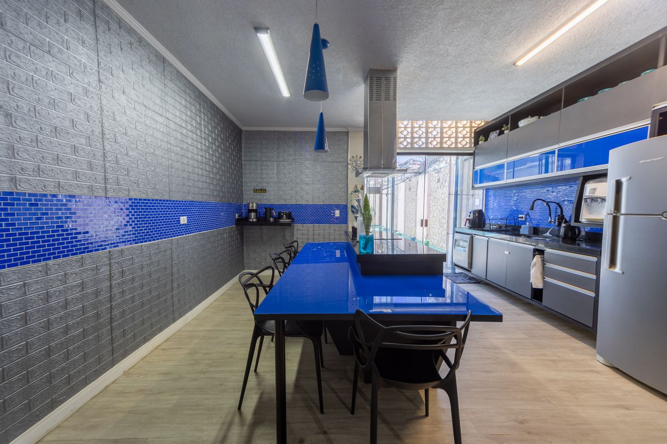 - Cozinha completa com fogão, forno, geladeira, freezer, cafeteira, torradeira, fritadeira, liquidificador, máquina de lavar louça, utensílios e itens variados(exceto óleo e sal)