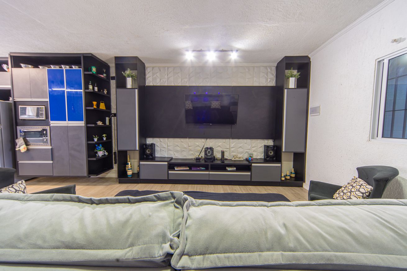 - Sala com sofá retrátil, poltronas, Smart TV, ventiladores e sistema de som