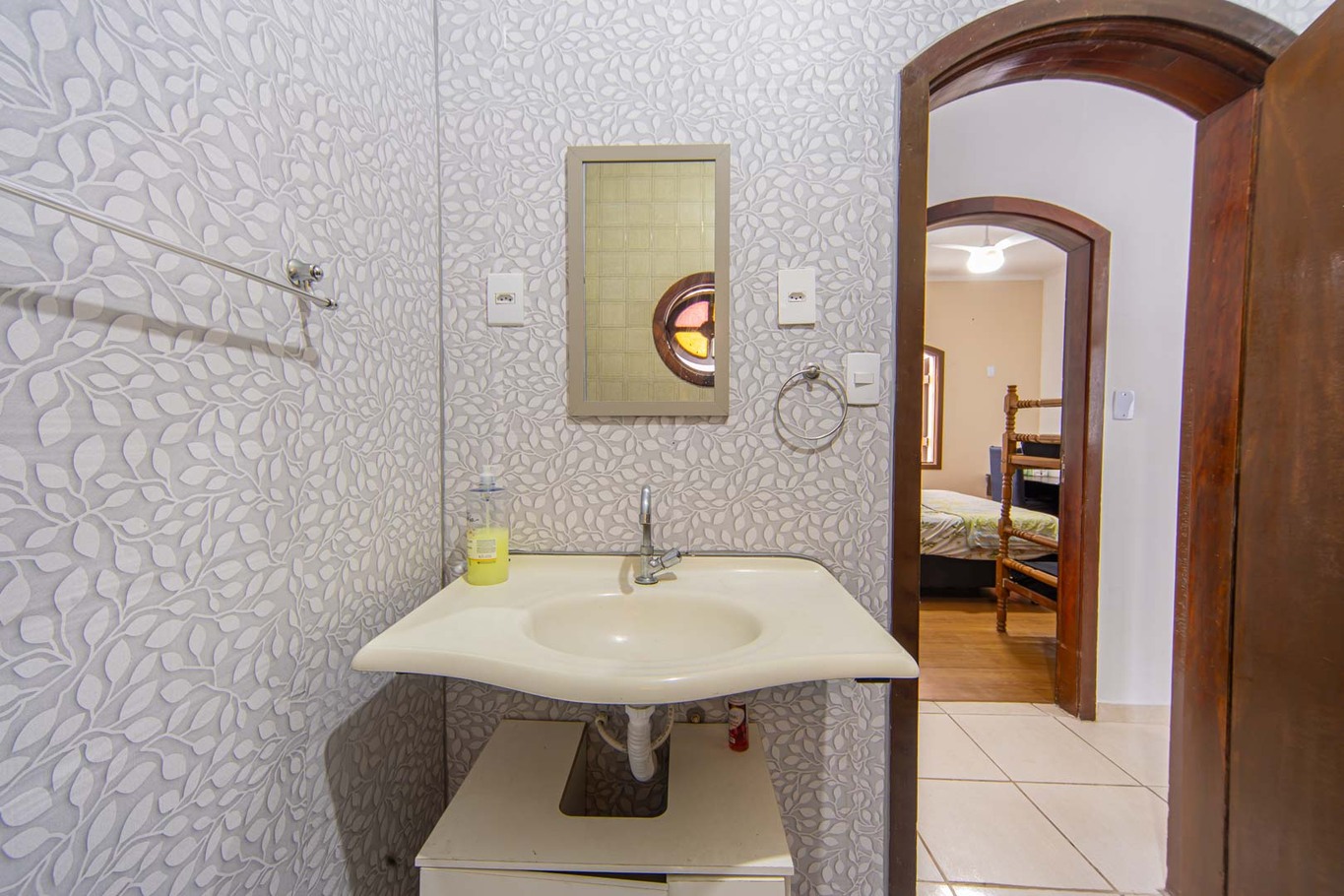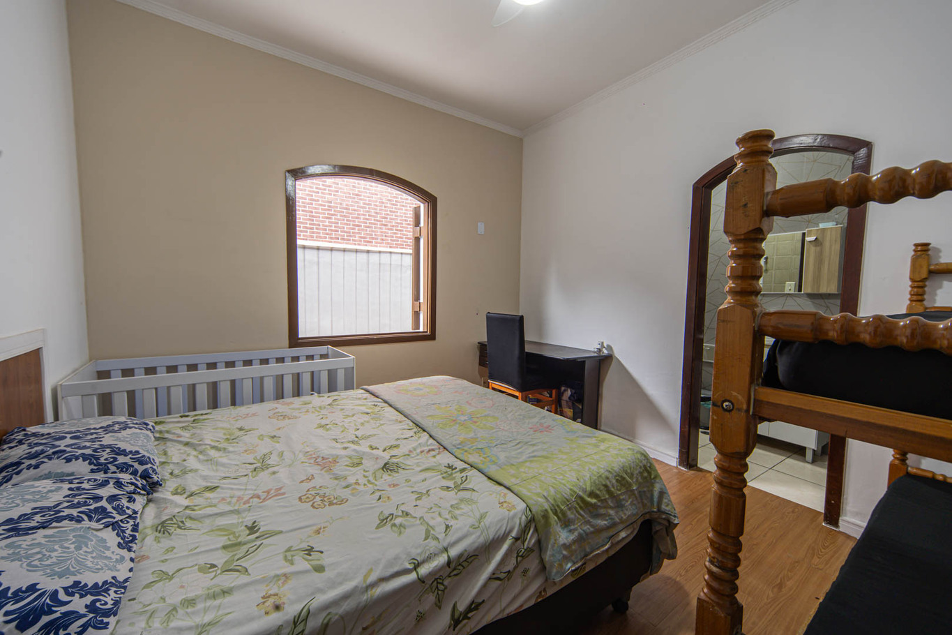 - Quarto 1 (Suíte): 1 cama de casal, 1 beliche e 1 berço ventilador e banheiro privativo com box e chuveiro elétrico