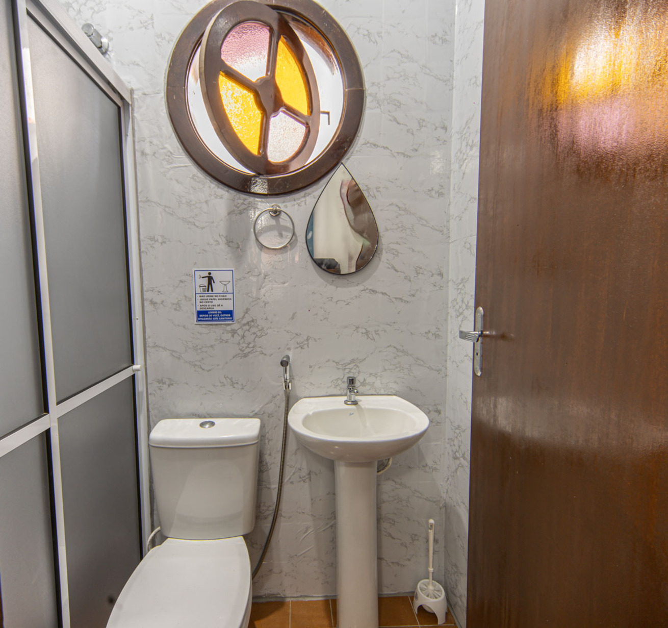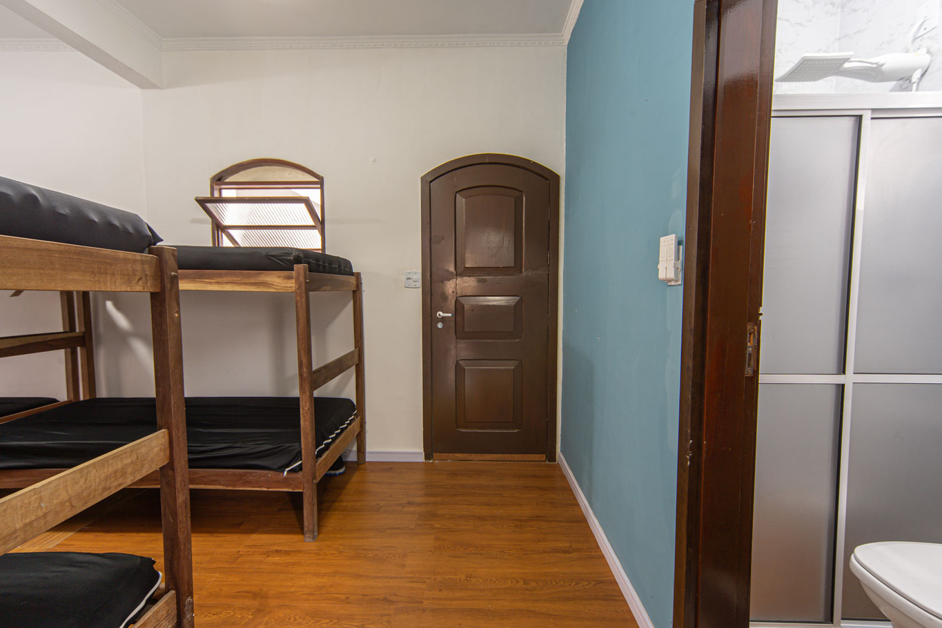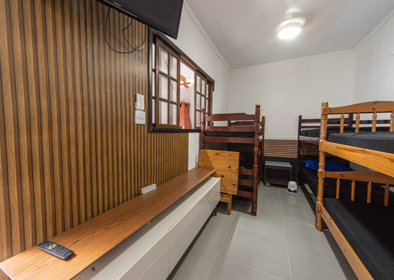 - Quarto 2 (Suíte): 5 beliches, ventilador e banheiro privativo com box e chuveiro elétrico