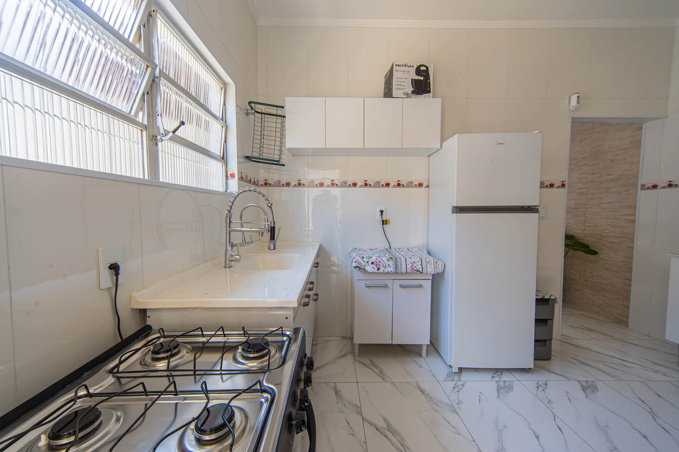 - Cozinha equipada com fogão, forno, geladeira, freezer, micro-ondas, liquidificador, chaleira, coador, panelas, utensílios diversos(exceto óleo e sal)