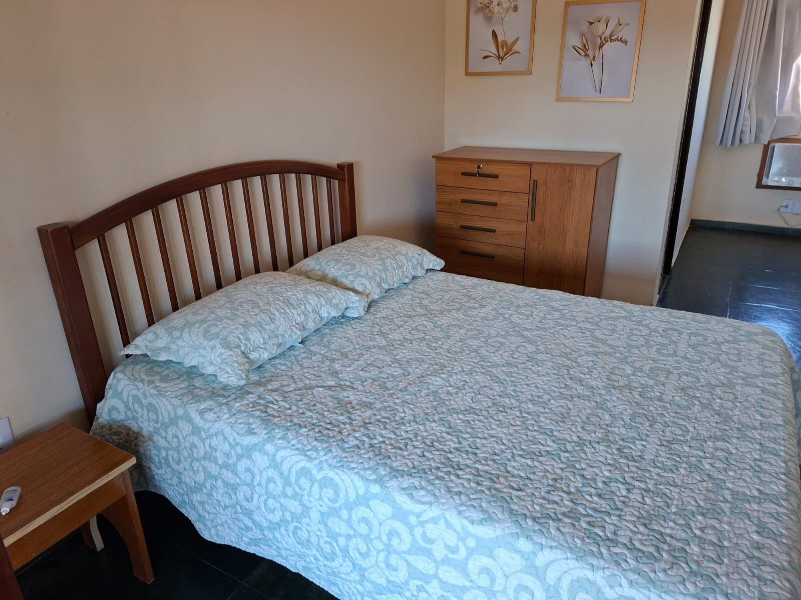 - Quarto 2 (suíte): cama de casal, ar-condicionado e ventilador