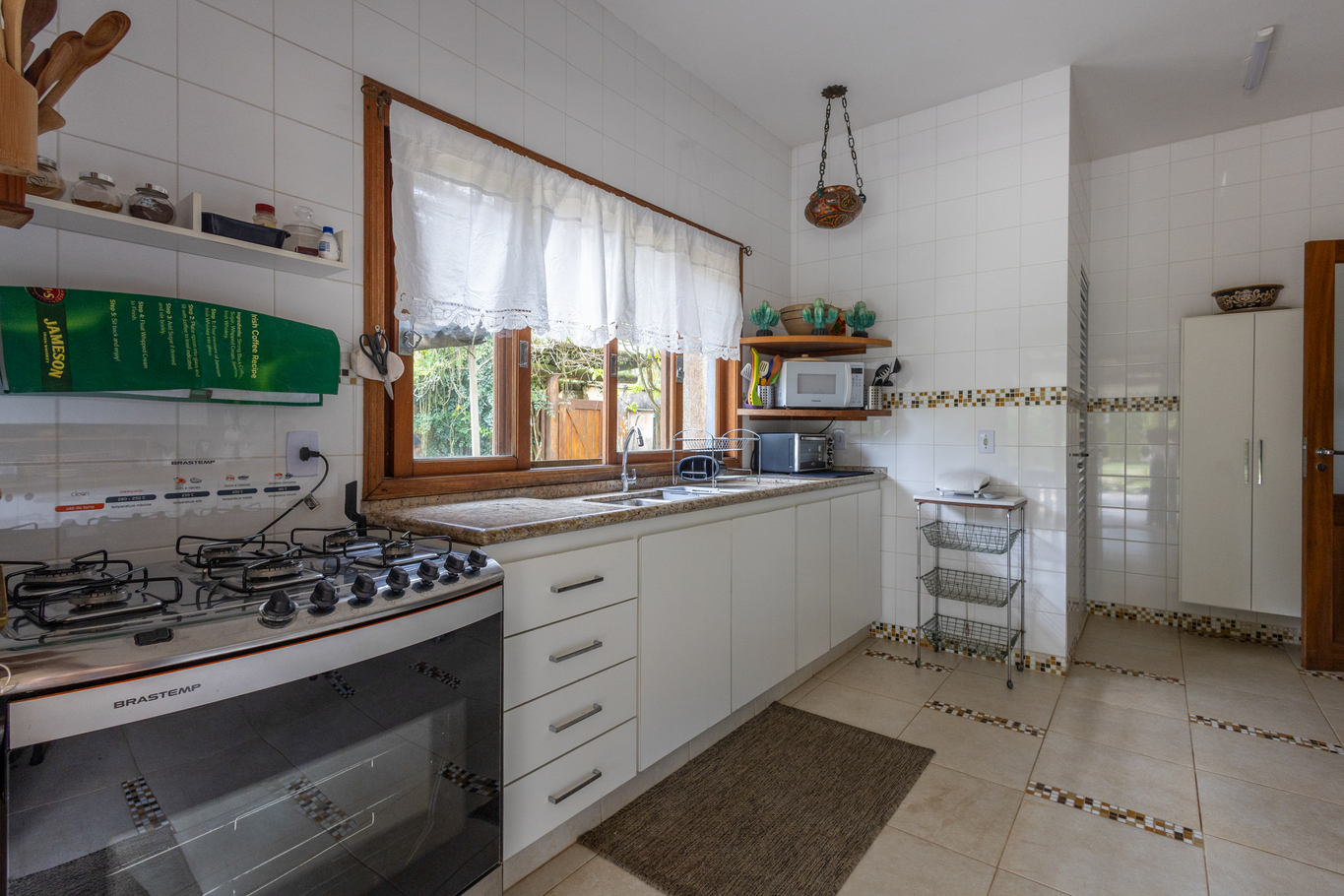 - Cozinha gourmet completa, com fogão, forno, geladeira, freezer, micro-ondas, cafeteira, liquidificador e utensílios básicos (exceto óleo e sal)