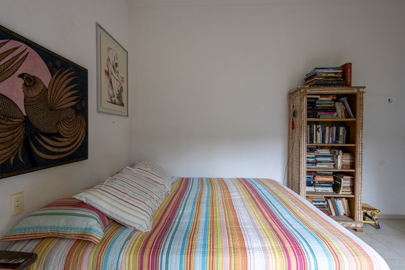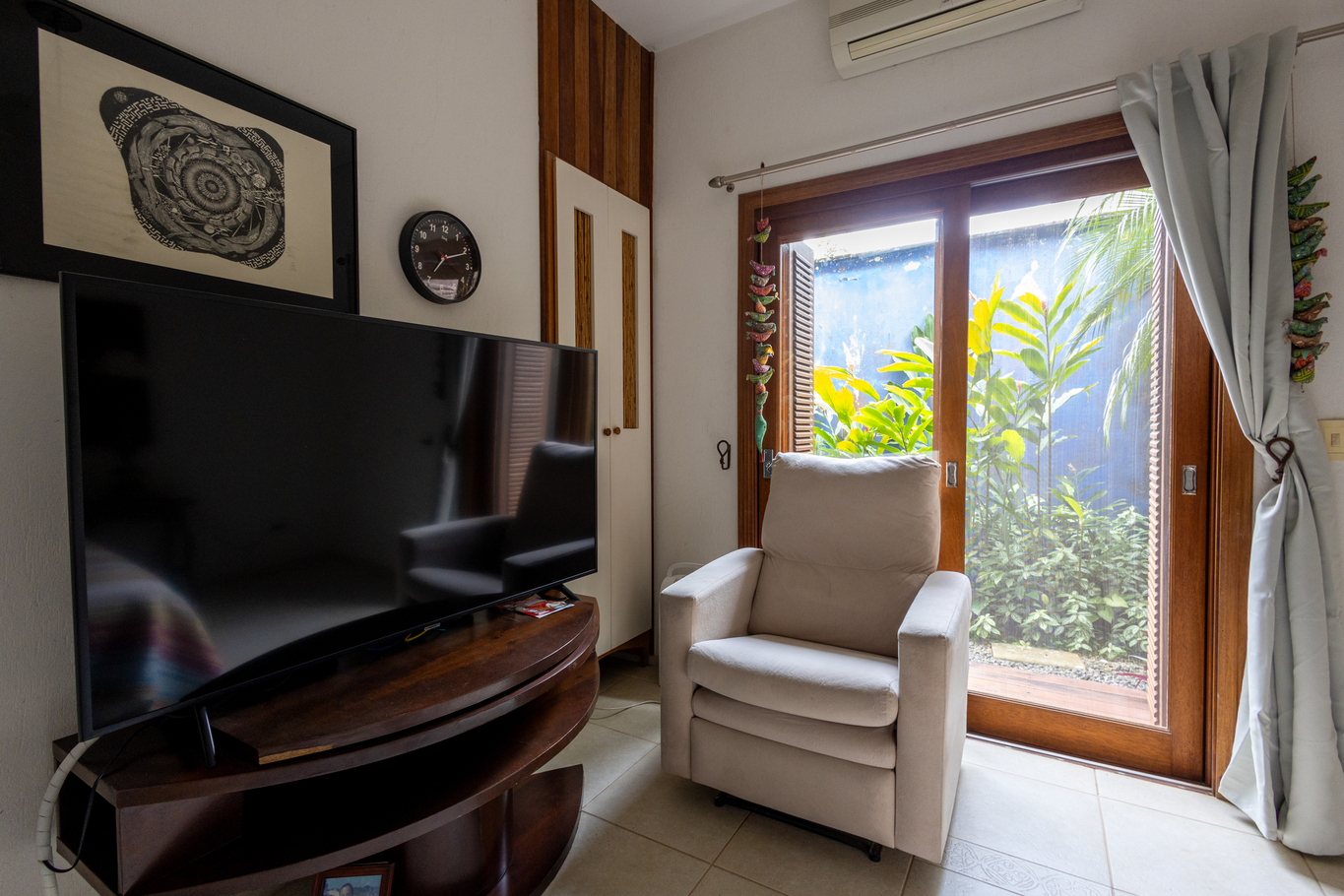 - Quarto 1: cama de casal, ar-condicionado, armário, banheiro com ducha higiênica, chuveiro a gás e box de vidro