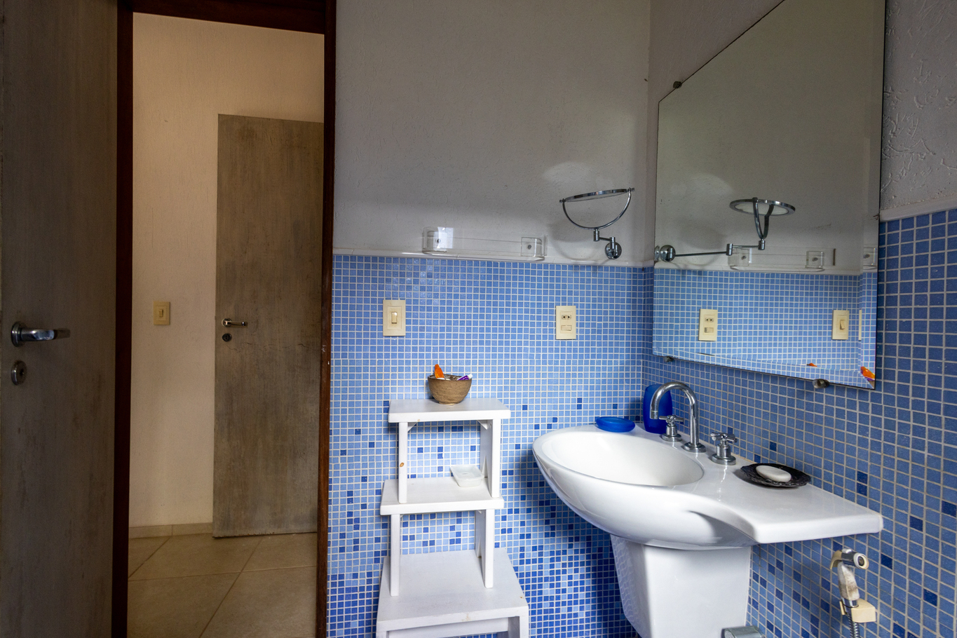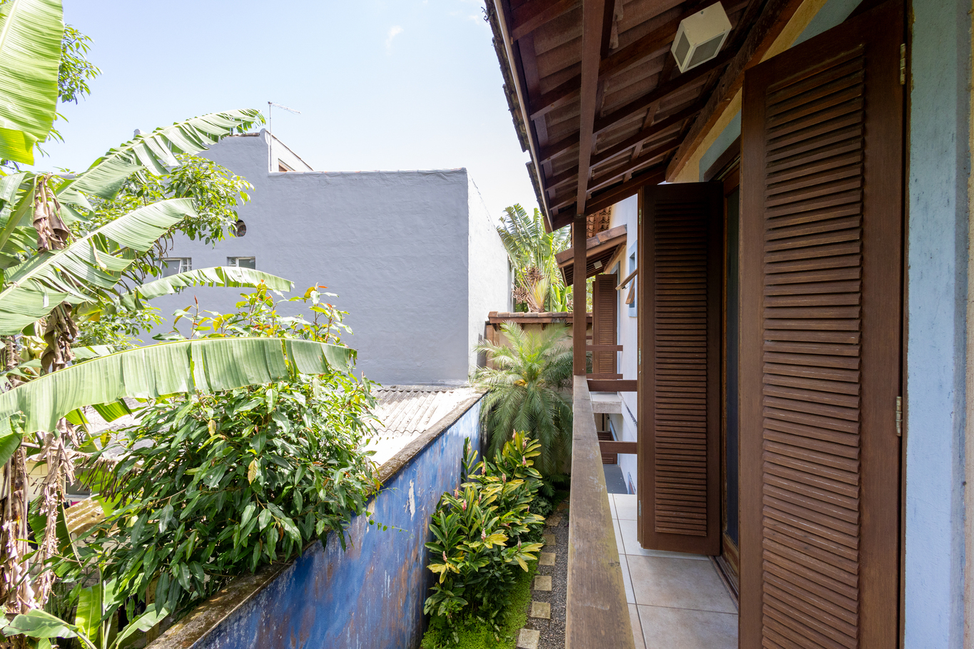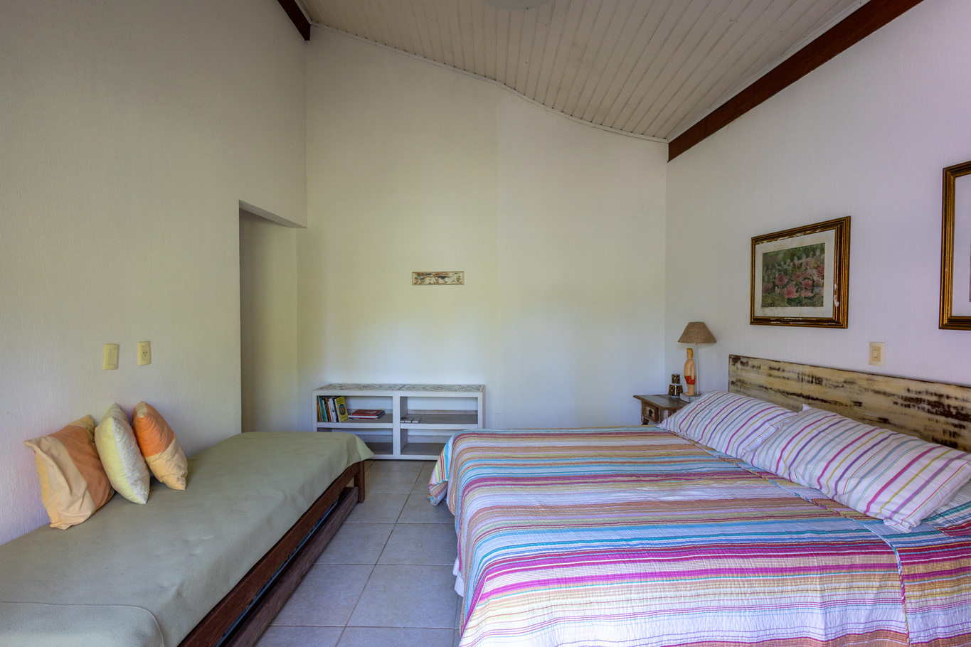- Quarto 5: 2 camas de solteiro + 1 bicama, ar-condicionado, banheiro com ducha higiênica, chuveiro a gás e box de vidro