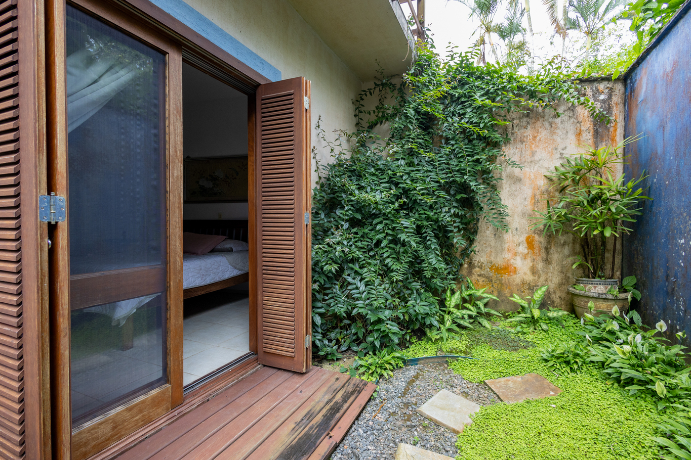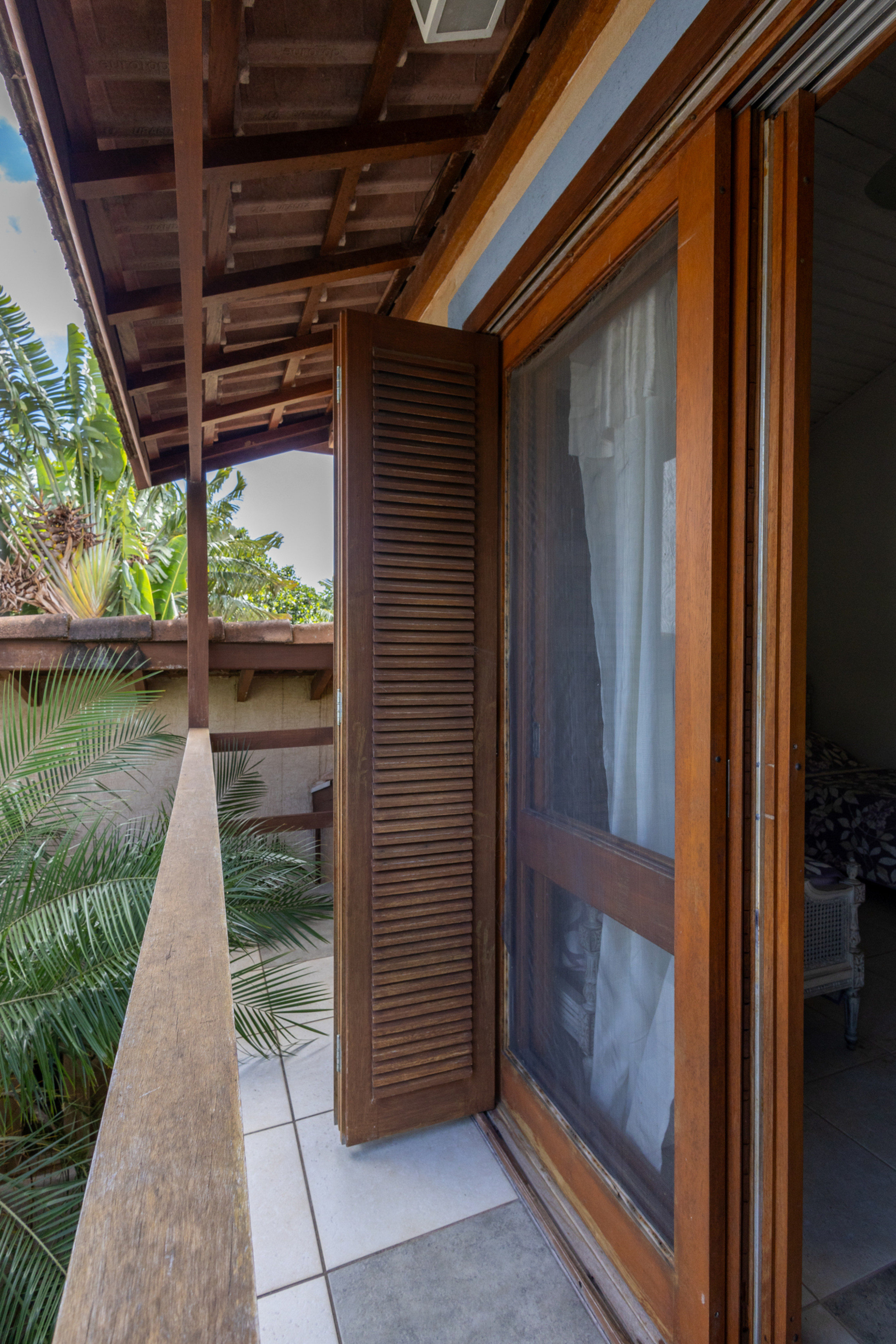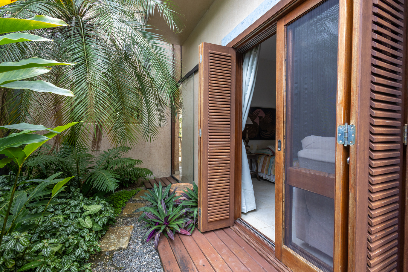 - Quarto 5: 2 camas de solteiro + 1 bicama, ar-condicionado, banheiro com ducha higiênica, chuveiro a gás e box de vidro