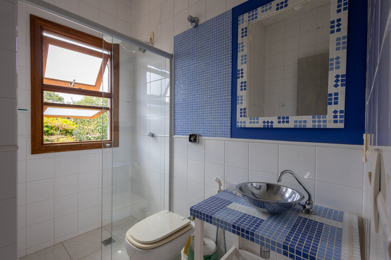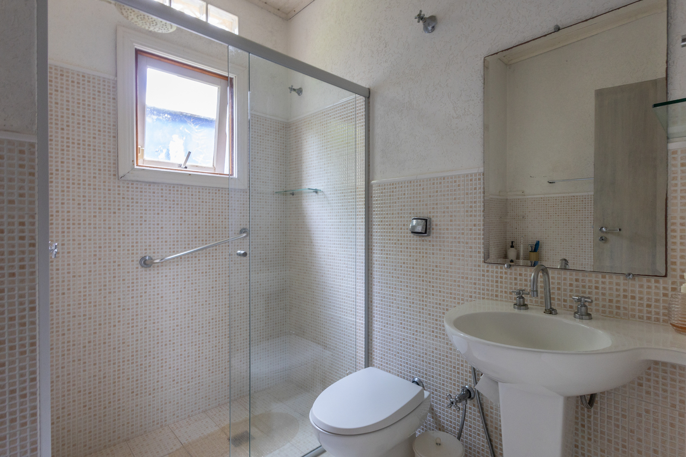 - Quarto 4: cama de casal, aquecimento, ar-condicionado, banheiro com ducha higiênica, chuveiro a gás e box de vidro