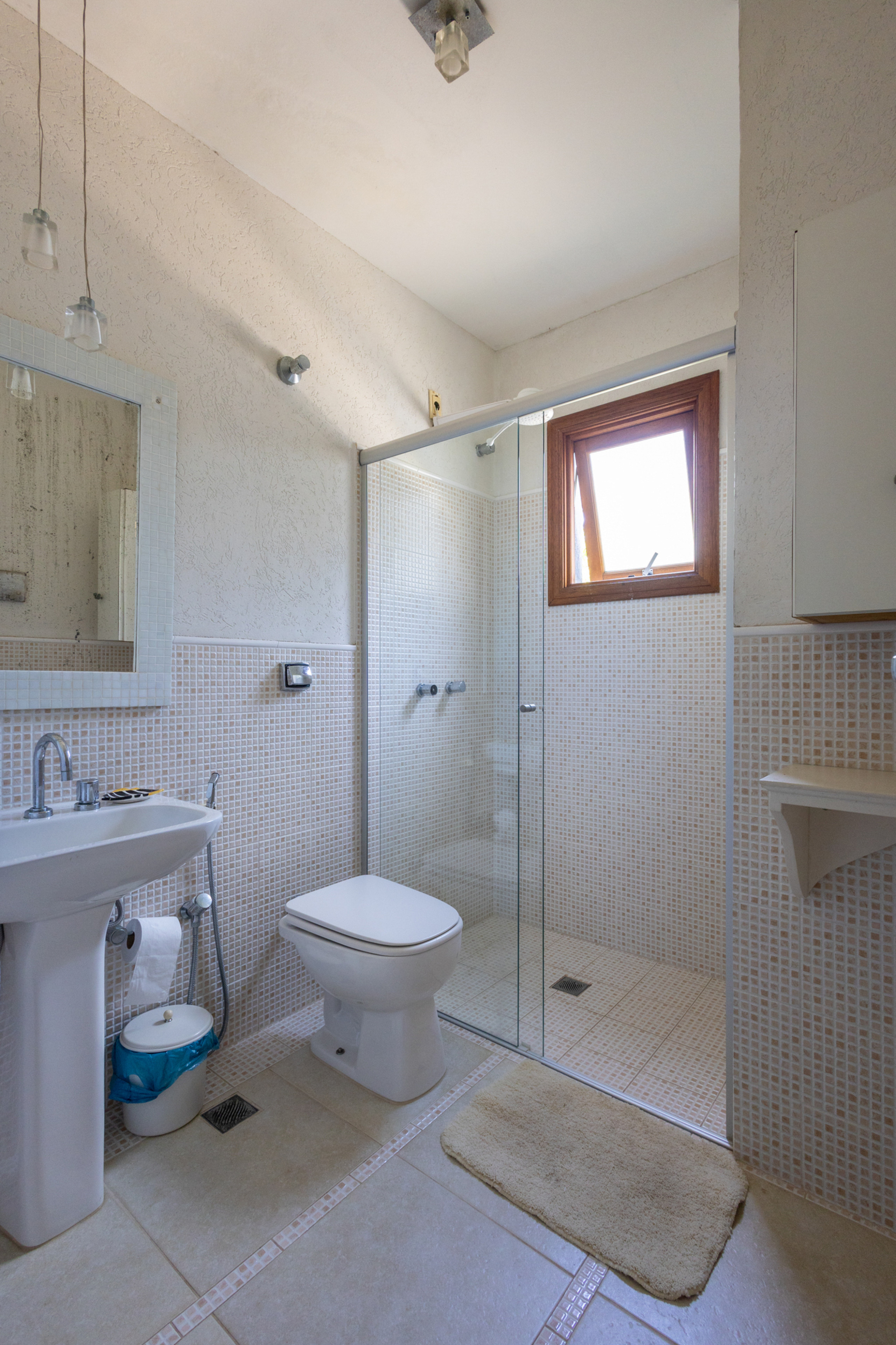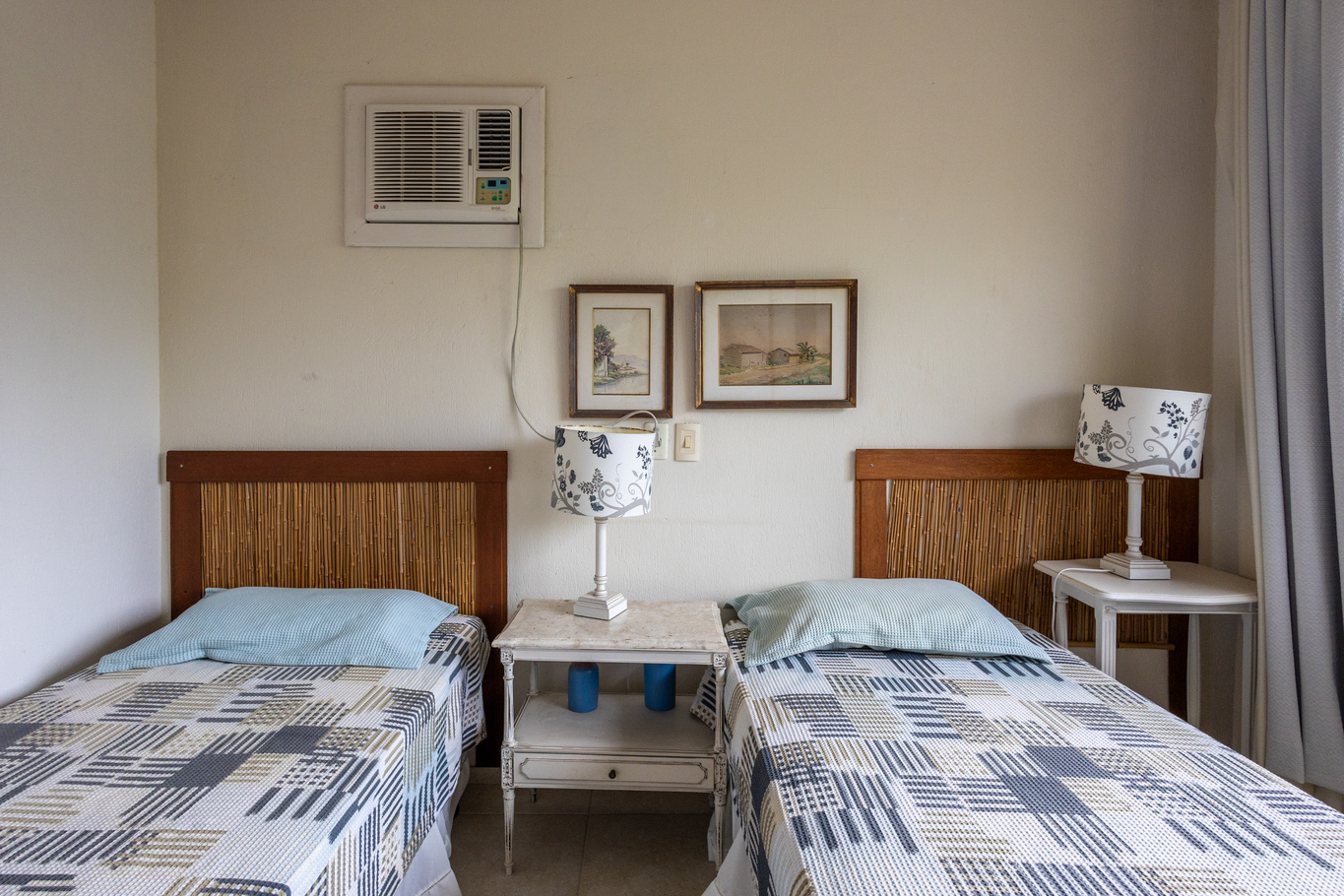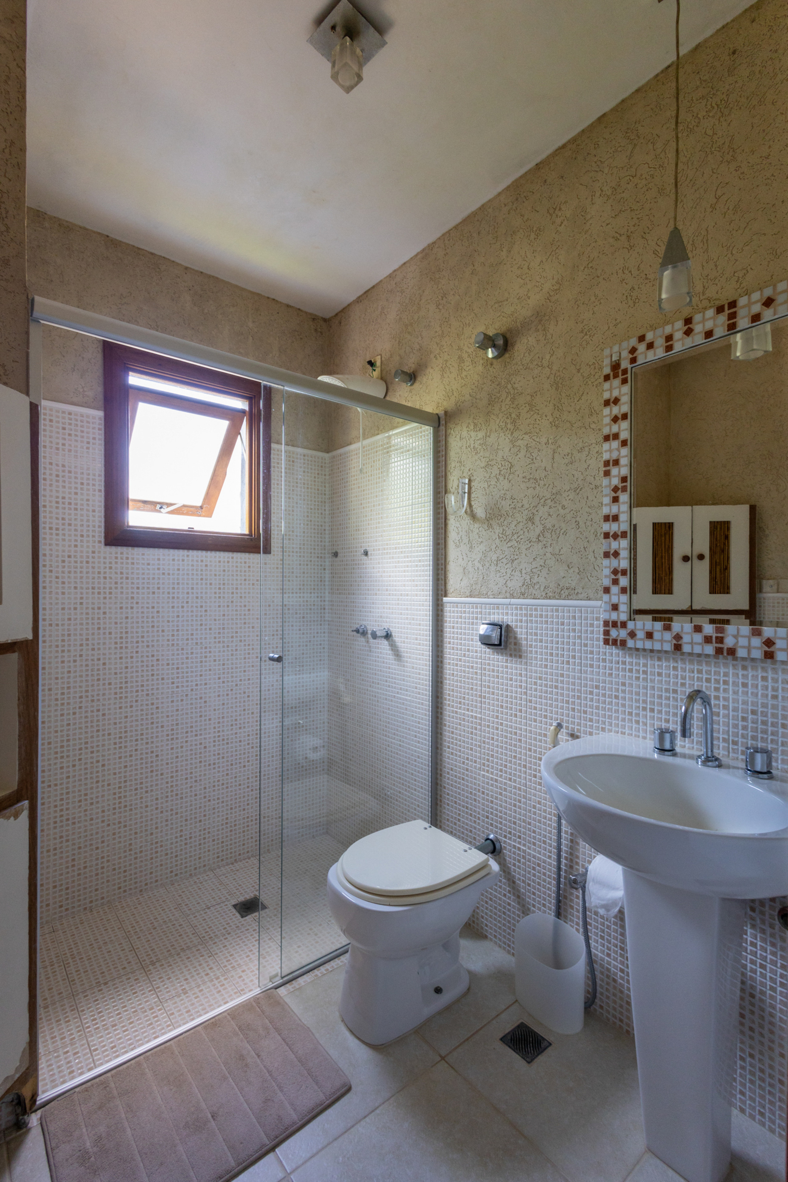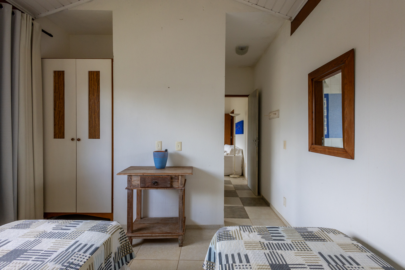 - Quarto 3: 2 camas de solteiro, armário, banheiro com ducha higiênica, chuveiro a gás e box de vidro