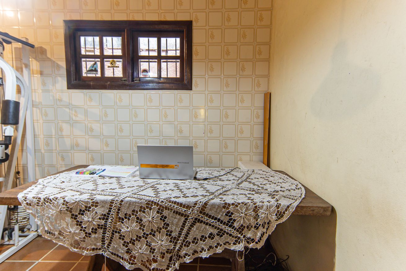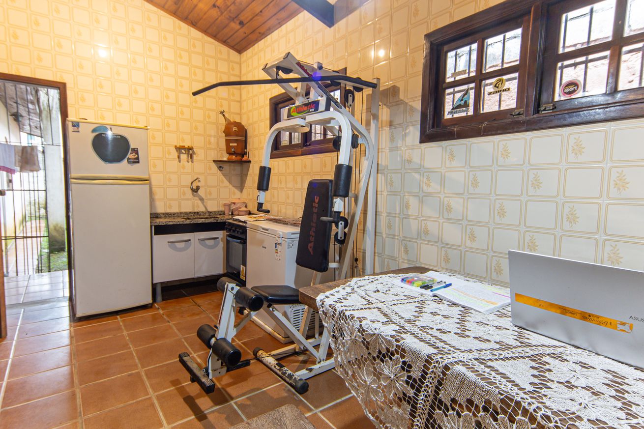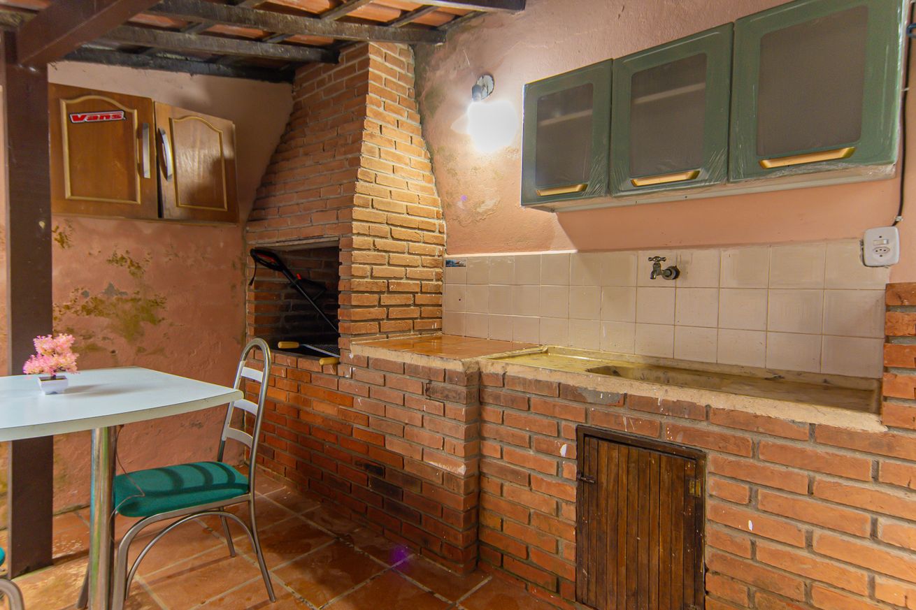 - Área gourmet equipada com churrasqueira, mesa, pia e armário com utensílios básicos de cozinha. A casa conta ainda com varanda com sofá desmontável (que se transforma em sala de estar), redes de descanso, guarda-sol, esteiras, espreguiçadeiras, cadeiras de praia, bicicleta infantil e brinquedos para crianças