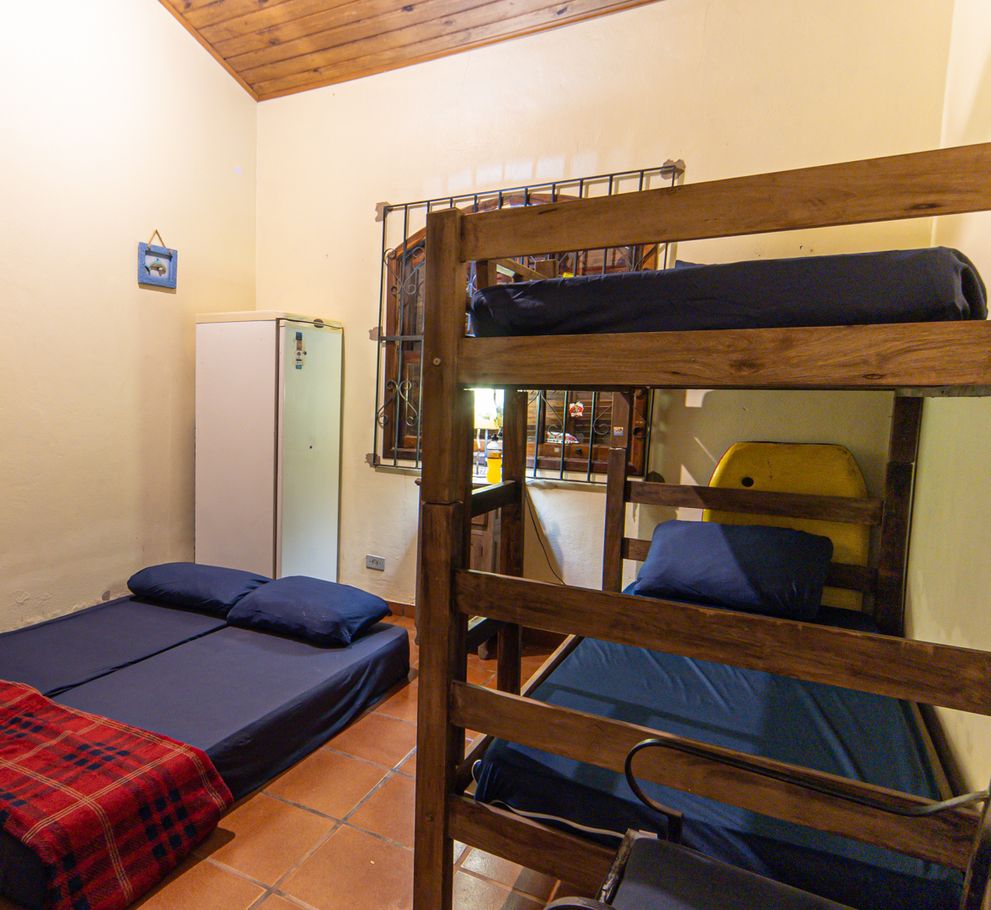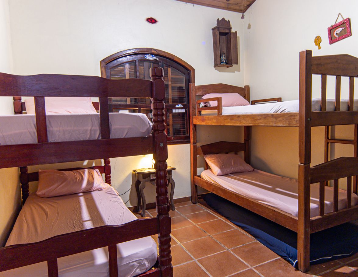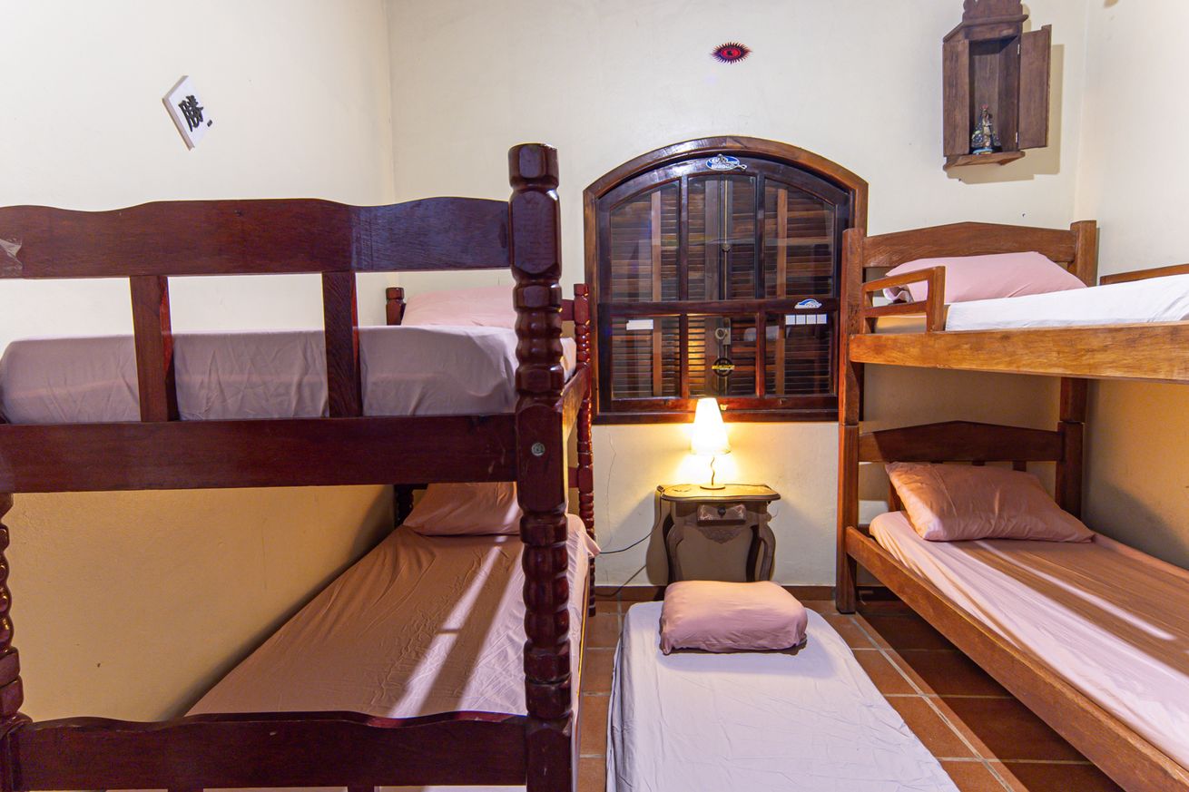 - Quarto 1: 2 beliches, armário, ventilador, mesa com abajur e janela com folhas duplas que permitem escurecimento total.