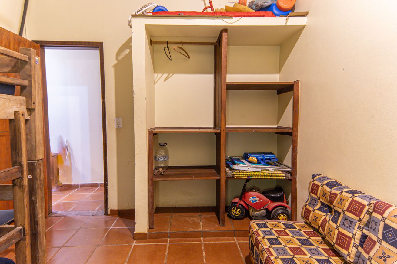 - Quarto 2: 1 beliche e 1 sofá-cama tipo bicama, armário, ventilador, mesa de canto com espaço para guardar objetos e geladeira