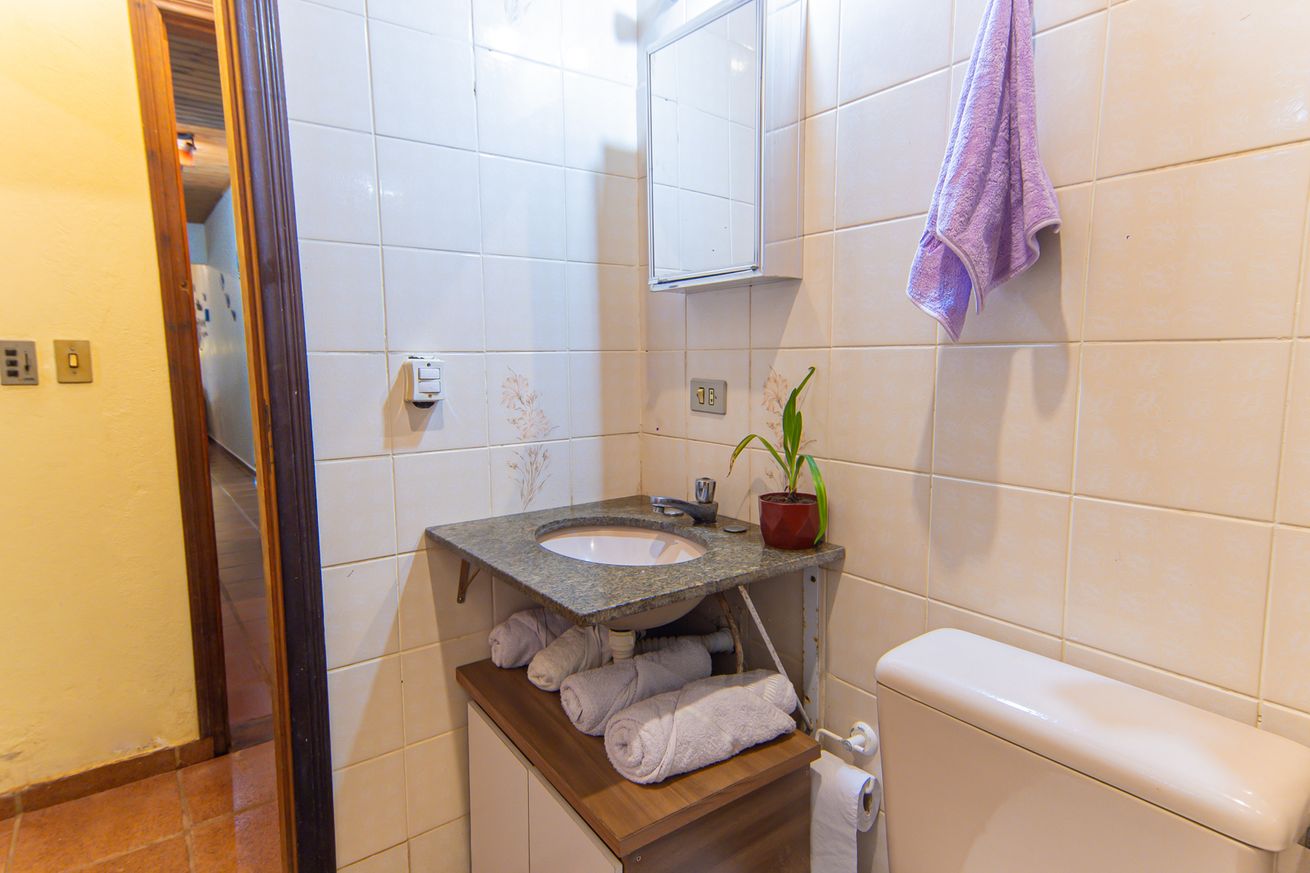 - Quarto 3 (suíte): 1 cama king size, smart TV, ventilador banheiro privativo com chuveiro elétrico, box e secador de cabelo